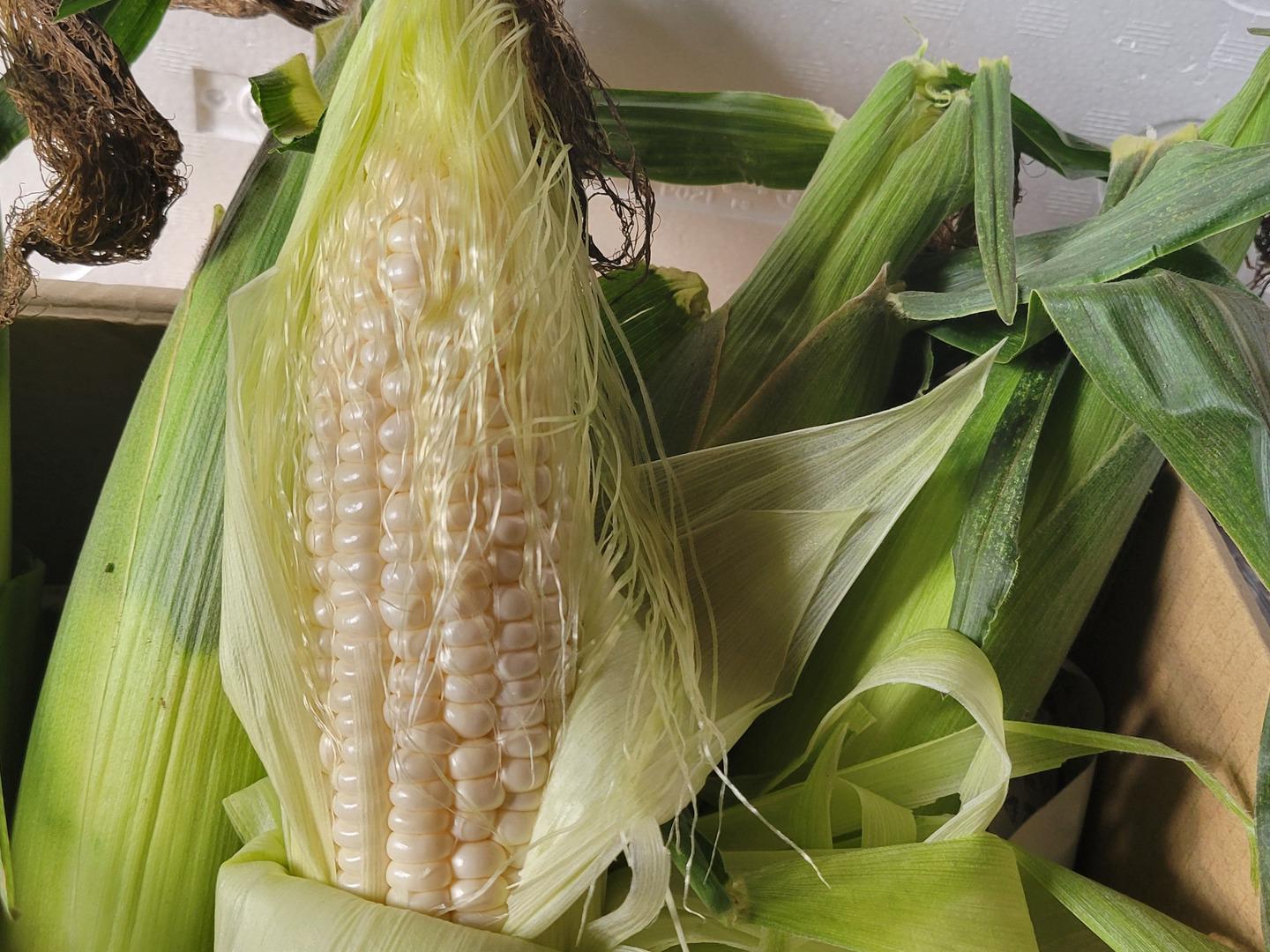 ホワイトコーンで糖度が特に高い強甘味種、透き通るような美しいスイートコーンであり、味も色もまさにプラチナ級です。