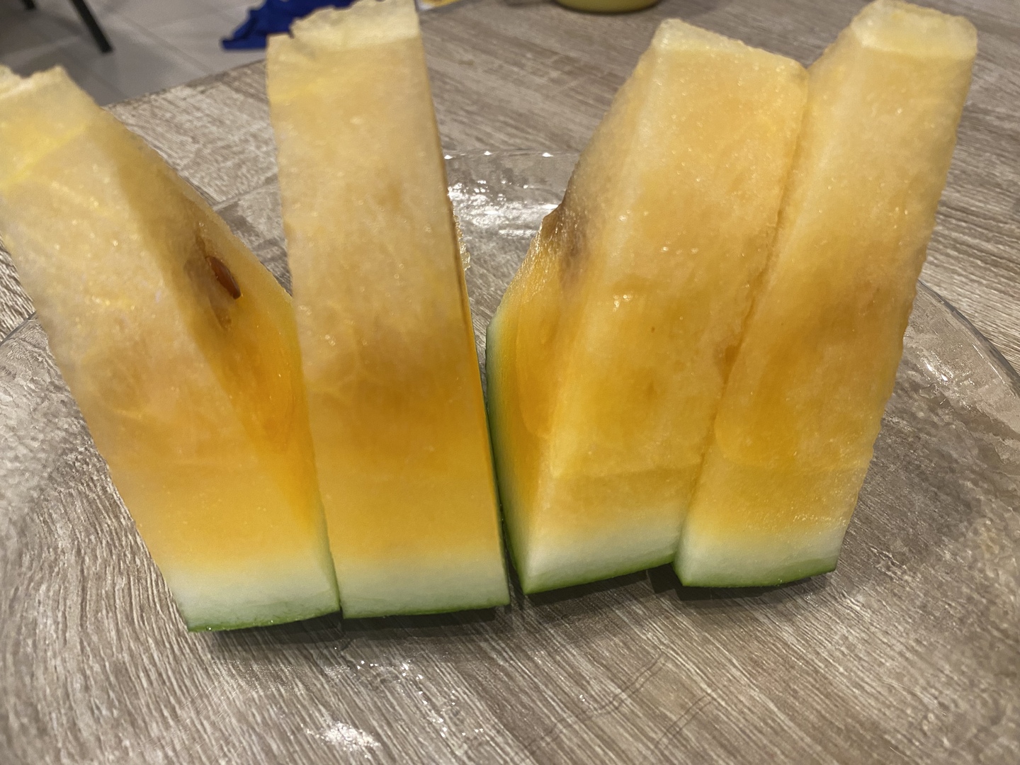 果肉は黄肉品種よりも濃い黄橙色で「黄金」にも似た果肉色。 極めて強い甘味と、黄肉種特有のさっぱりした風味を併せ持ち、赤肉系とは異なる美味しさ。 果肉が緻密で硬く、食感に優れるほか、果肉が崩れにくく棚持ちが極めて良い。