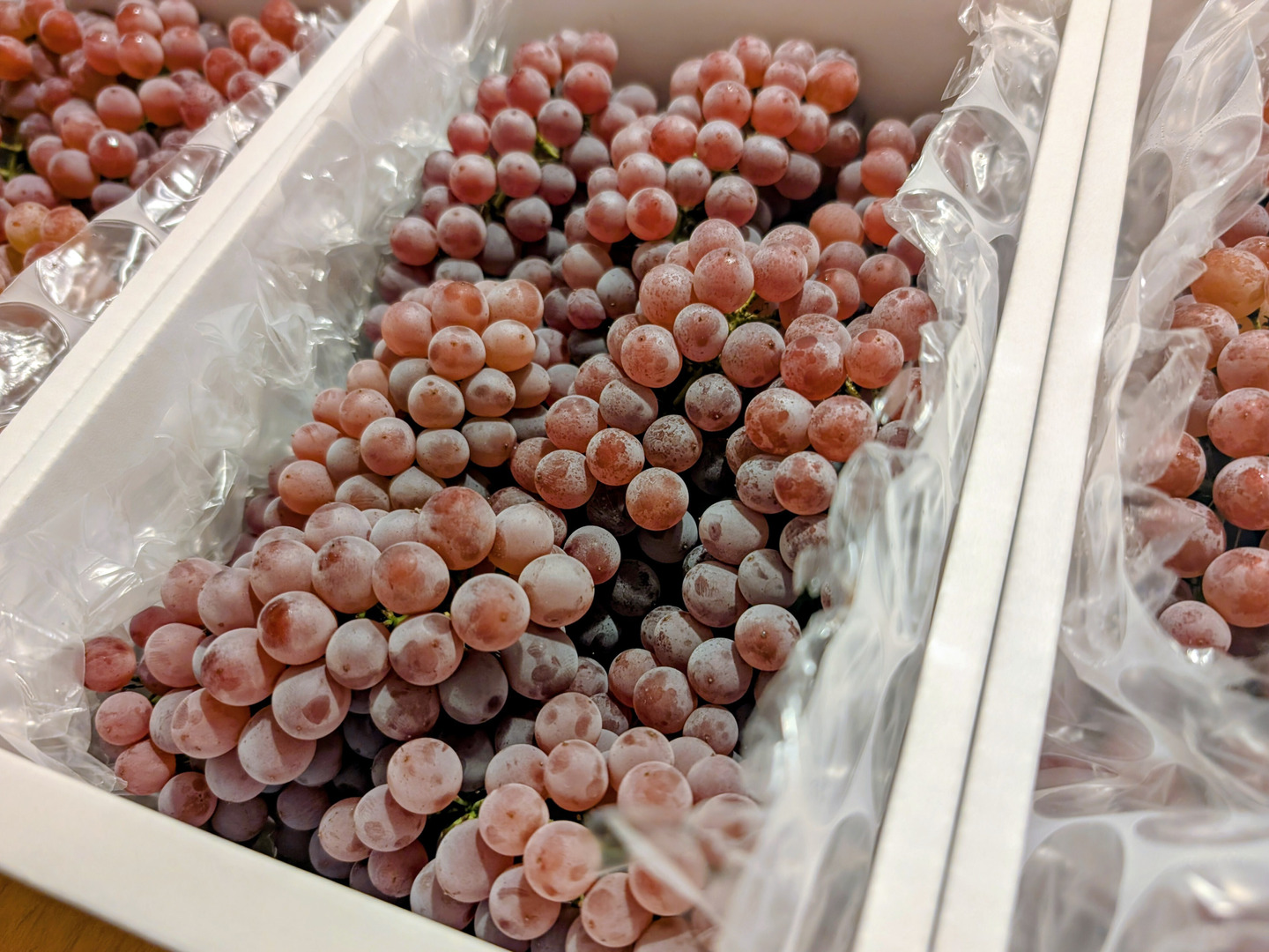 ※梱包には細心の注意を払って発送していますが、ぶどうは傷みやすいため運送便で潰れてぐちゃぐちゃになってしまう場合があります。