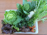 だいこん、白菜、にんじん、水菜、高菜、ほうれん草、春菊、里芋、さつまいも、にんにく(小)など家庭料理に使いやすい野菜をお届けします。収穫のタイミングでお入れできる野菜が異なります。ご了承ください。