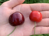 1粒10g以上と極大粒で黒褐色のハート形。日本では生産量の少ない希少品種。果肉に厚みがあり、瑞々しさが口いっぱいに広がる。酸味が控えめであっさりとした食味。