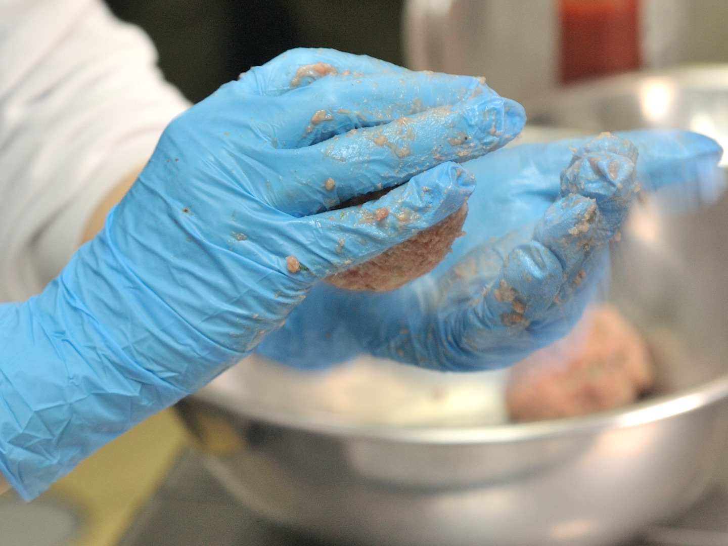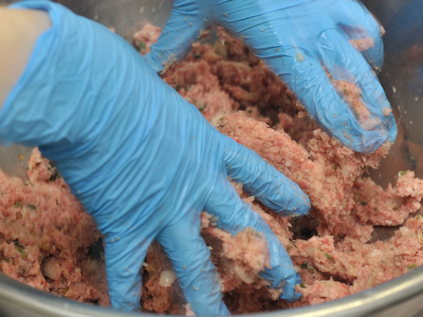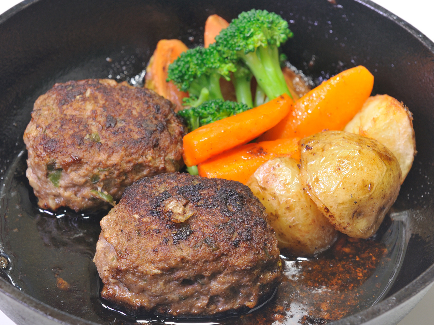 - 地元の有名精肉店によって手間ひまかけて加工されたハンバーグ
