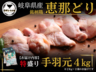 岐阜県産 【恵那どり】大容量 手羽元 4kg (冷蔵)
