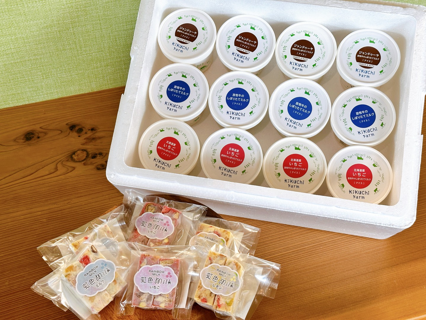 | 内容 | 【しぼりたてミルク×4個 北海道イチゴ×4個 ジャンドューヤ×4個(※1個あたり105ml)、虹色MILK 各種2袋(2本入り) 25g×6袋】#夏スイーツ #アイス #ジェラート #台湾ヌガー | ||||||