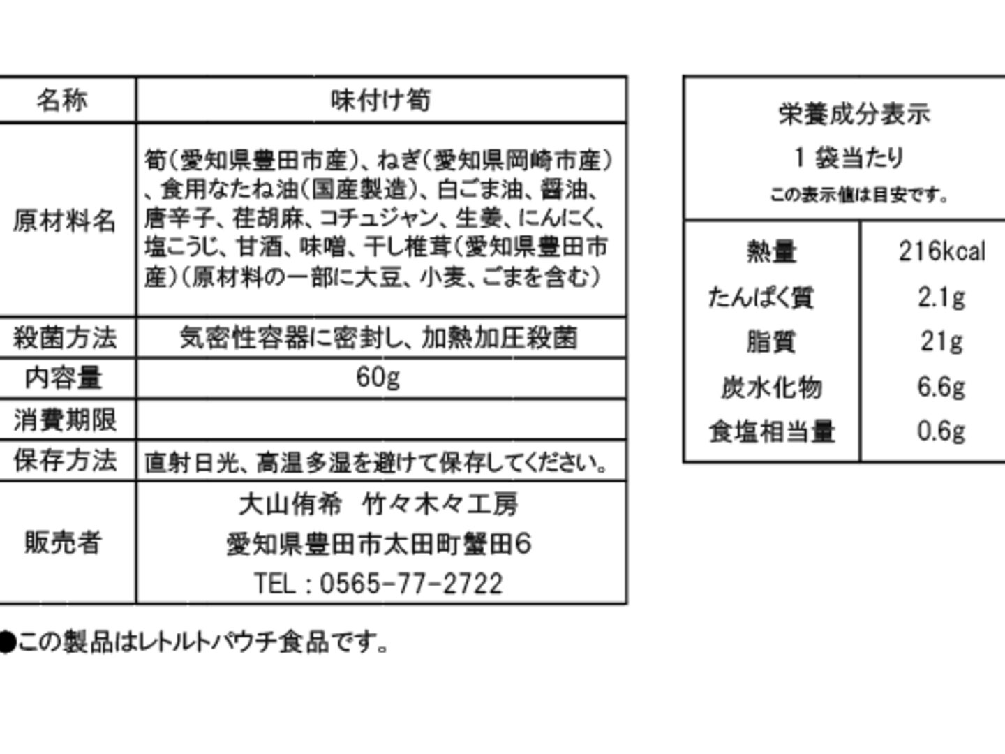 本当は、現地に来ていただいて、茹でたての肉厚筍を味わっていただきたいと思っていますが、旬の時期が短いので、レトルト加工し、ご家庭でも食べられるようにしました。ぜひお試しください!