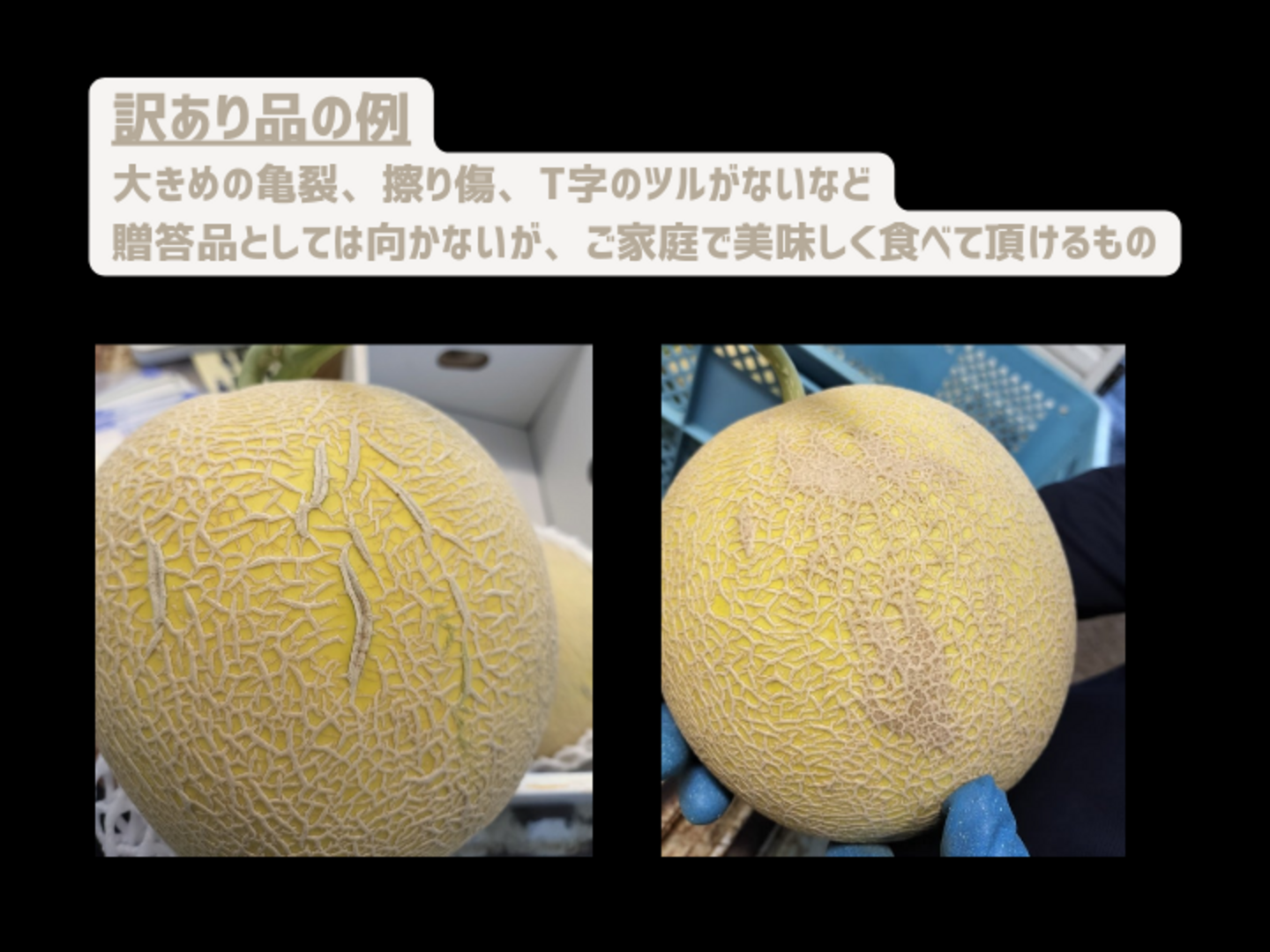 亀裂やすり傷、T字のツルがないなど、贈答品には向かないけれど、ご家庭で美味しく食べて頂けるものです。
