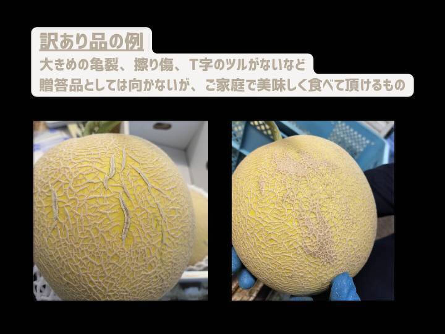 メロンの外観が贈答品に向かないもの(大き目のヒビ、擦り傷)。