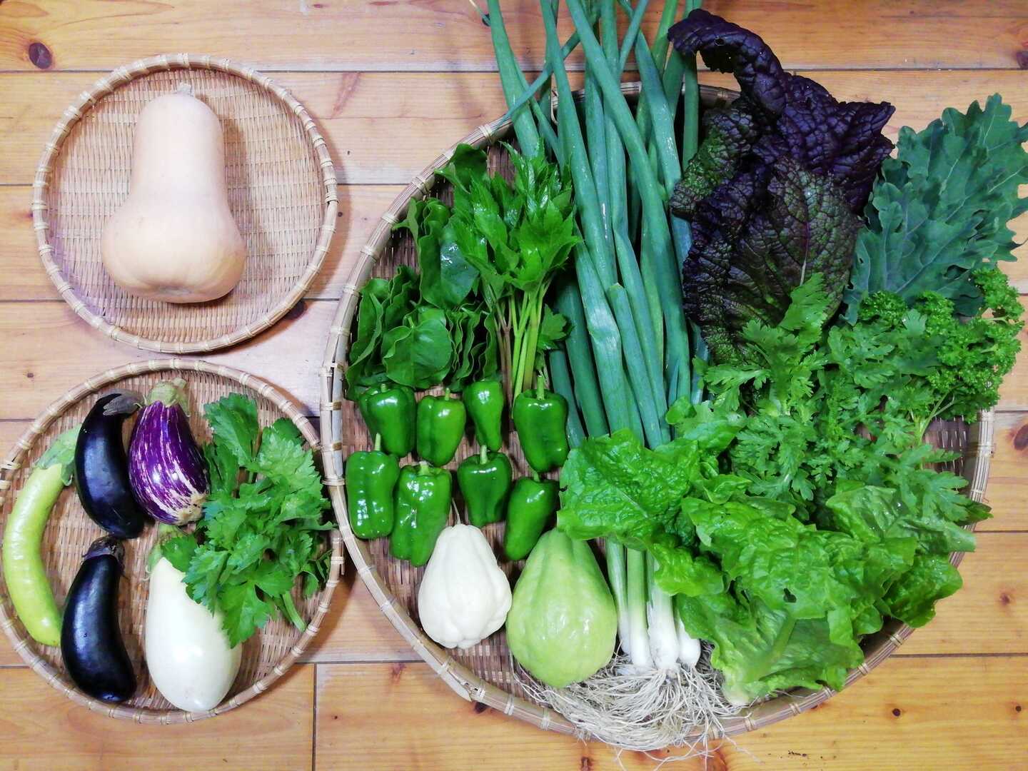 - 状態のよい野菜を選んで収穫。いろいろ楽しめる8種類以上。