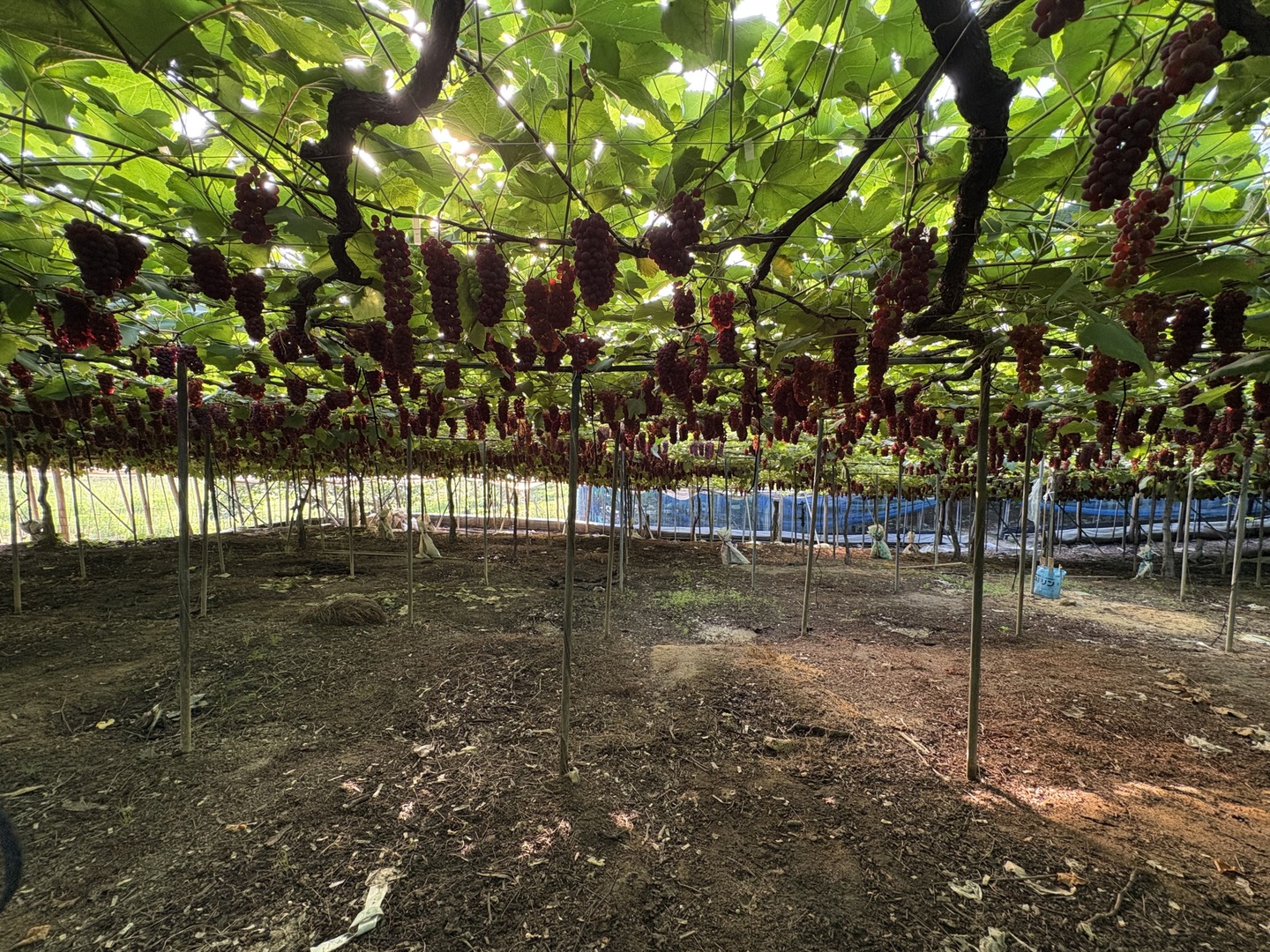 昔噴火した火山灰が土地の元となっており、ぶどうに生育のよい黒ボク土で栽培しております。昔から大阪のぶどうの産地として有名な太子町で栽培しております。