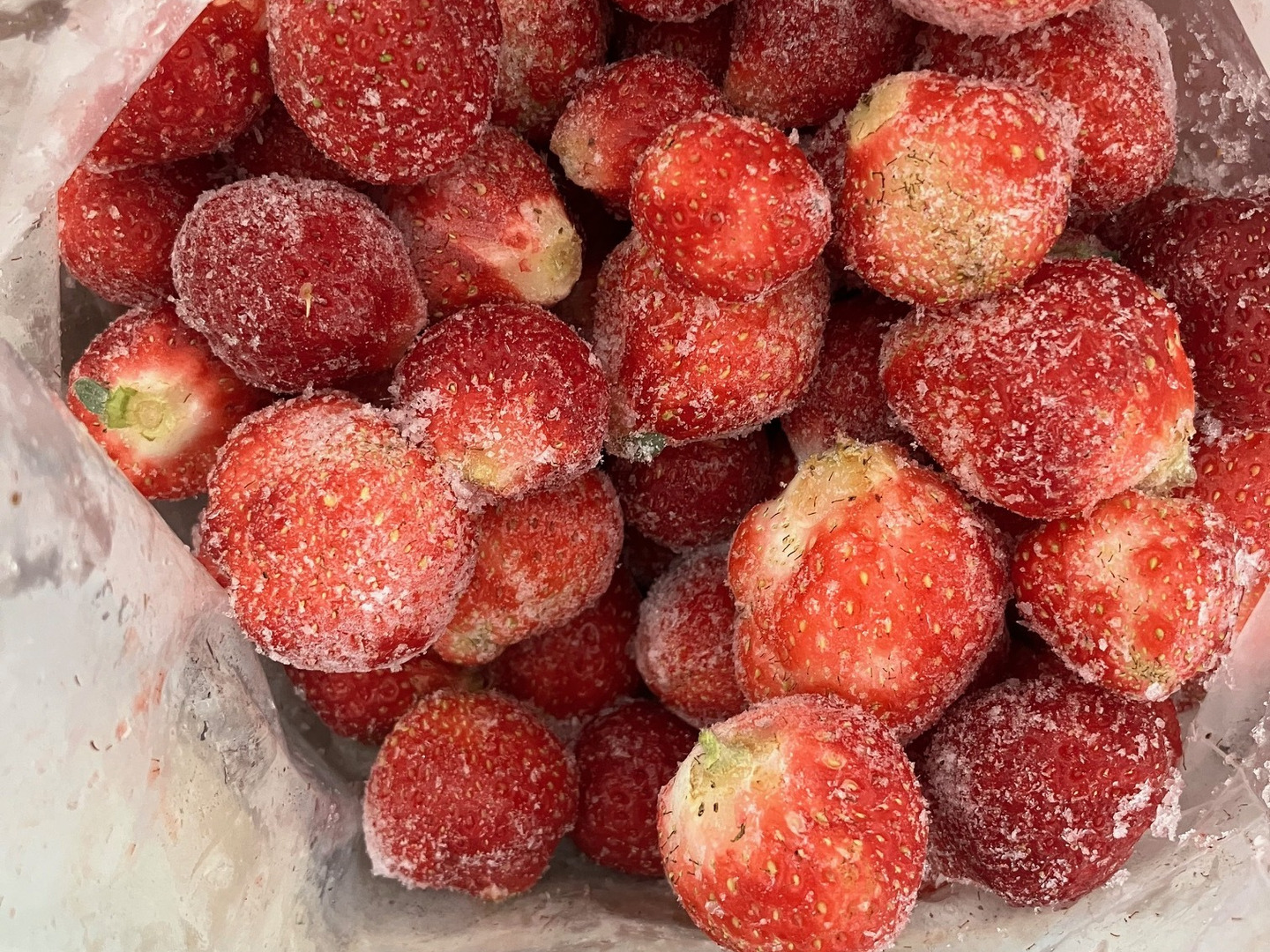 完熟果を凍らせています。大きさは無選別です。ヘタが少々残っている可能性がありますが、ご了承ください。