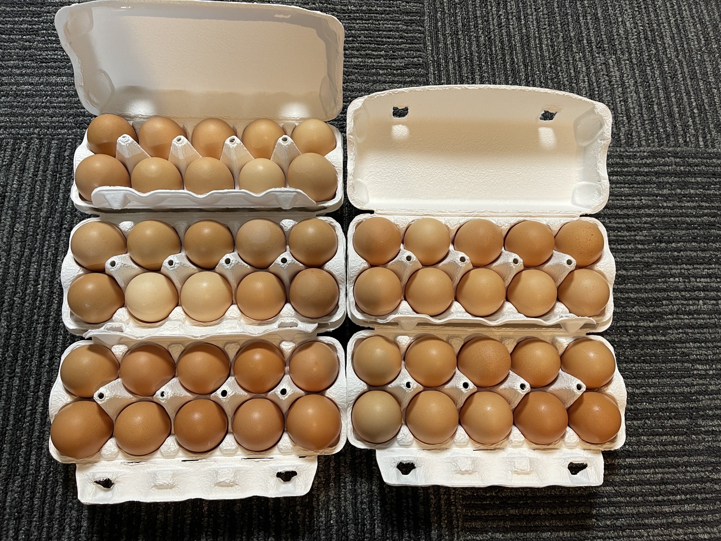 商品について あわせ買い対象 同生産者の別の「あわせ買い対象」商品と一緒にご注文いただくと、送料をまとめてお届けできる場合があります。 生産者からのお知らせ 🌟現在、発送までお時間をいただいています🌟 いつもありがとうございます✨誠に申し訳ございません。現在、産卵数が少なく、発送までお時間をいただいております。そのため12月の発送が難しい状況で、1月になってからの発送となります。こちらの都合で、ご迷惑をおかけしておりますが、よろしくお願いいたします🙇 もっと見る 内容 鶏卵50個(10個×5パック) 発送 ヤマト運輸(食べチョク特別送料) 送料 ¥ クール便(冷蔵) + ¥ 330 数量1点ごとに送料が発生します。 種別 卵・乳製品 卵 もみじ 産地 広島県 平飼い・放牧 卵・乳製品 もみじ 広島県x卵・乳製品 広島県x卵 広島県xもみじ 賞味期限 / 保存方法 発送から20日間 到着後は冷蔵庫にて保管下さい。(要冷蔵) 商品説明 🐔≪内容量≫🐔 鶏卵40個(36個+割れ保障4個)+10個(9個+割れ保障1個)で、大家族での料理にぴったりなボリュームです。 🐔≪卵のサイズ≫🐔 サイズ:M~L 🐔≪鶏の品種・産地≫🐔 産みたて! 日本産のもみじ鶏の卵です。 産地は瀬戸内海にある離島、広島県大崎上島町です。🐔≪飼育・生産者のこだわり≫🐔 『自然の中で放し飼い 元気いっぱいに育った鶏のたまご❣』 自然の恵みがいっぱい詰まった、放し飼い(1㎡約1羽 ゆとりの空間の中で放し飼い)のもみじ鶏が産んだ卵をぜひ体験してください❣ 『卵の鮮度を表す ‟ハウユニット値 高値110!” 品質が良く新鮮なたまご❣』 瀬戸内海の美しい島で、薬膳と厳選された果実をブレンドした特別なえさを食べて育ったもみじ鶏の卵は、特に黄身が鮮やかなレモン色で、白身はしっかりとした弾力を持っています。 それぞれの卵は丁寧に手作業で収穫され、新鮮さが保たれています。家庭に彩りを与える「もみじの卵」をお楽しみいただけます。🐔≪発送・注文に関する情報や注意事項≫🐔 ご注文から発送まで通常2〜3日以内に行いますが、天候や交通事情で遅れることがあります。🐔≪その他の情報や注意事項≫🐔 卵の特性上、保存方法を守っていただくと、より新鮮な状態でお楽しみいただけます。アレルギーがある方は事前にご確認ください。 もっと見る この商品のことをお友達にもシェアしませんか ポスト シェア