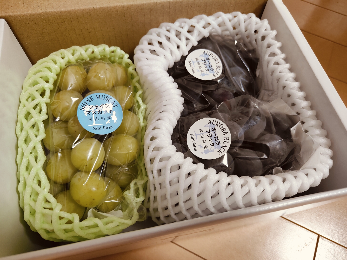 | 内容 | シャインマスカット+園主お任せ1品種 合計約1.1kg | ||||||