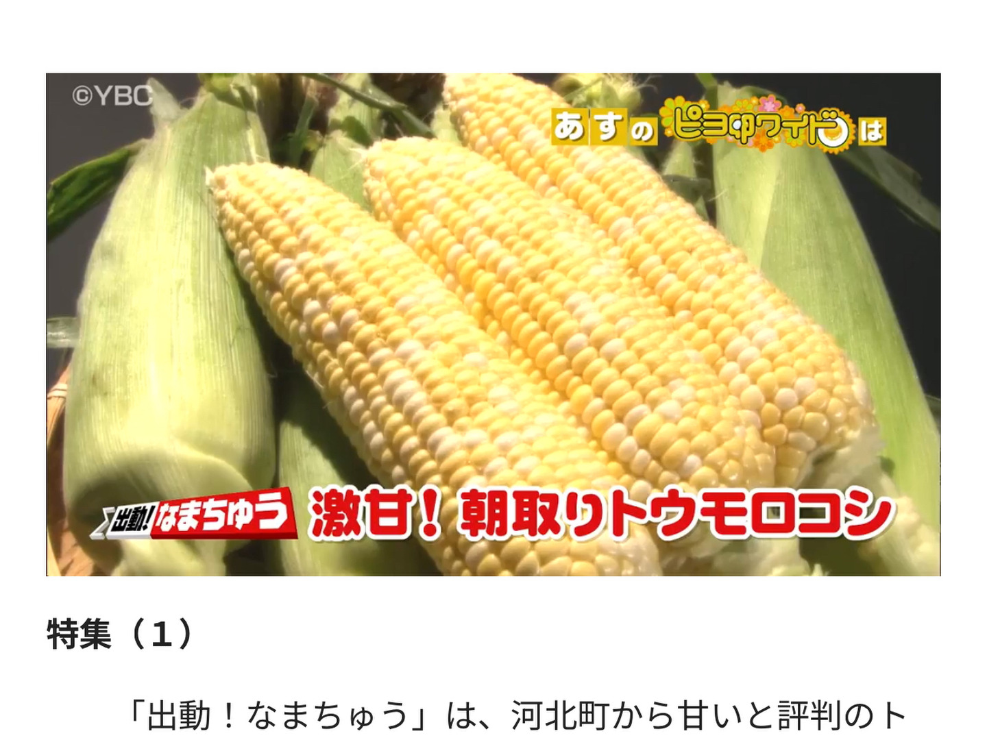 山形県はトウモロコシのイメージはありませんが、