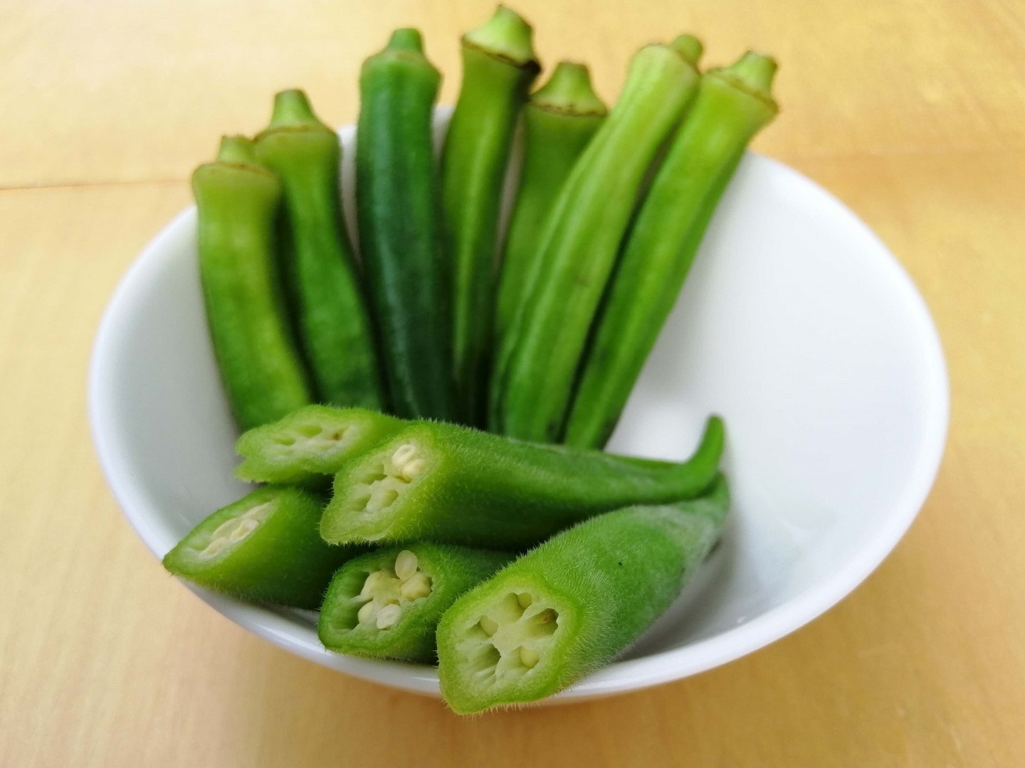 莢が丸型のオクラです。五角オクラより柔らかめなので、少し大ぶりの10~15cmが収穫適時。口当たりもよく、筋張ったものはほとんどありません。和え物や炒め物、揚げ物などにご利用いただけますが、丸オクラはやっぱりサラダ系がおすすめです。栄養素も豊富で、夏バテ防止にぜひ‼