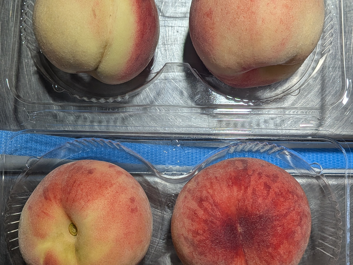 桃の品種は昴紀で、小さいサイズの極早生種の桃です。お好みに応じて追熟してからお召し上がりください。