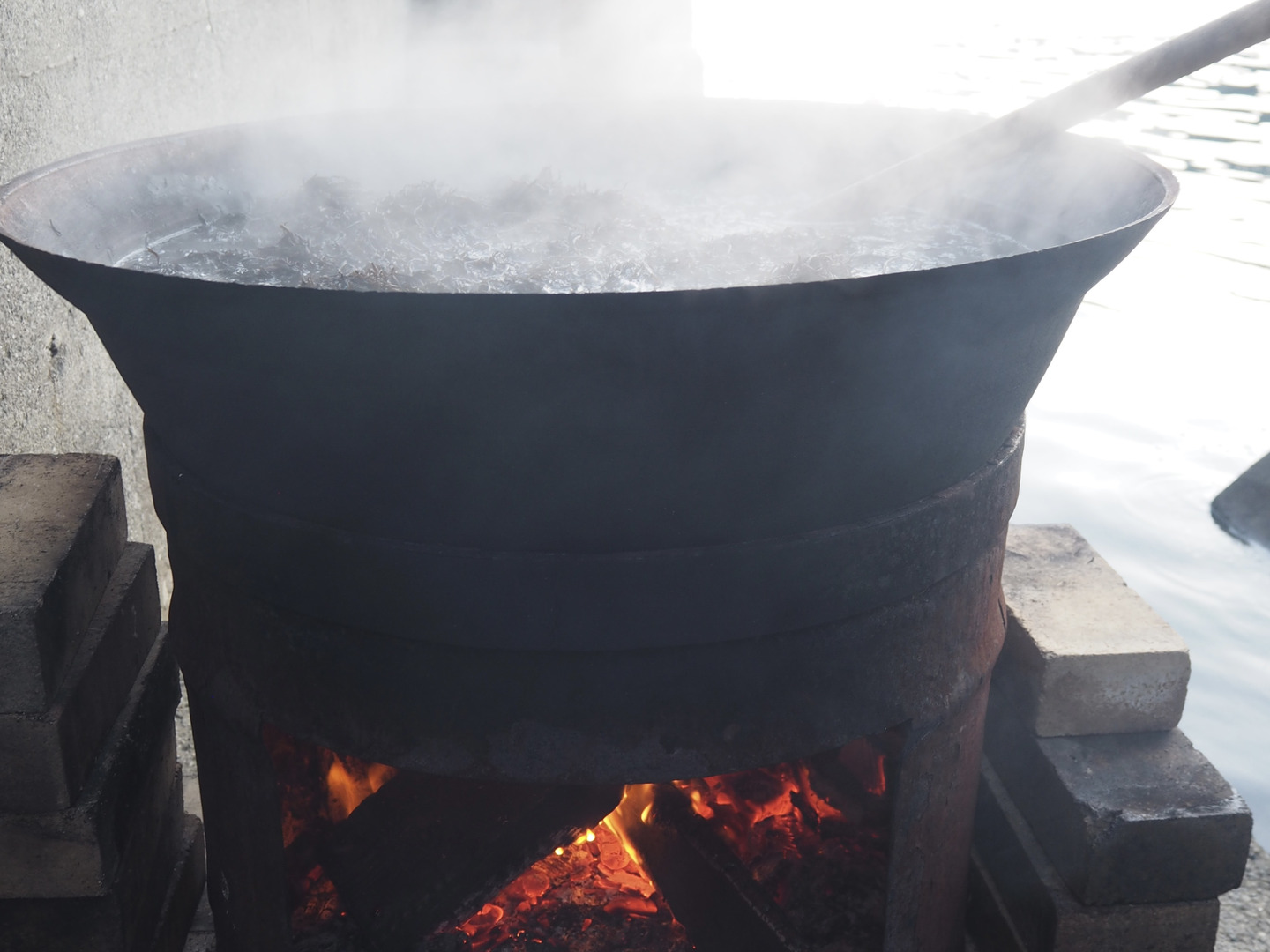 まだ、水温が低い3月に手摘みしたものを厳選し、昔ながらの伝統製法である鉄釜と薪でじっくり炊き、潮風と天日干しで仕上げたこだわりの逸品です。