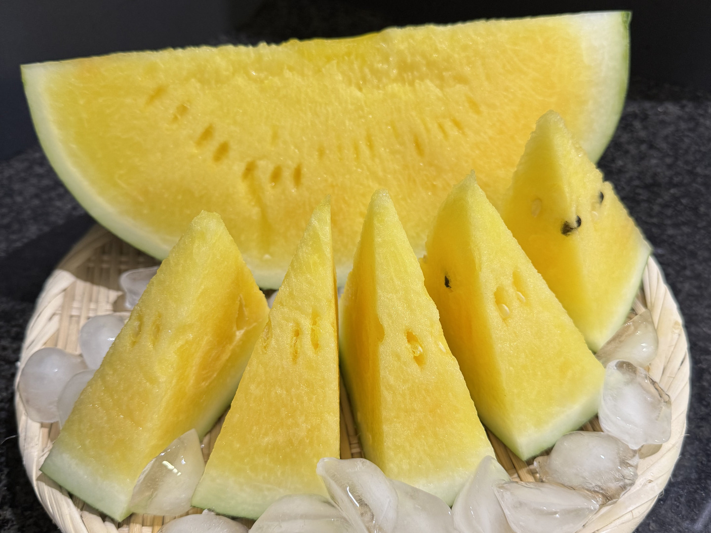 黄色果肉、黒い皮。圧倒的に種が少ない。シードレスではないので多少は種があります、というほど少ないです。透き通る甘みと果汁溢れるジューシーさ。果肉が喉を通れば、さわやかな透き通る香りが鼻に抜け、口の中までさわやか。酸味も少しあり、サマーオレンジとの食べ比べでより美味しくなる不思議さあり。