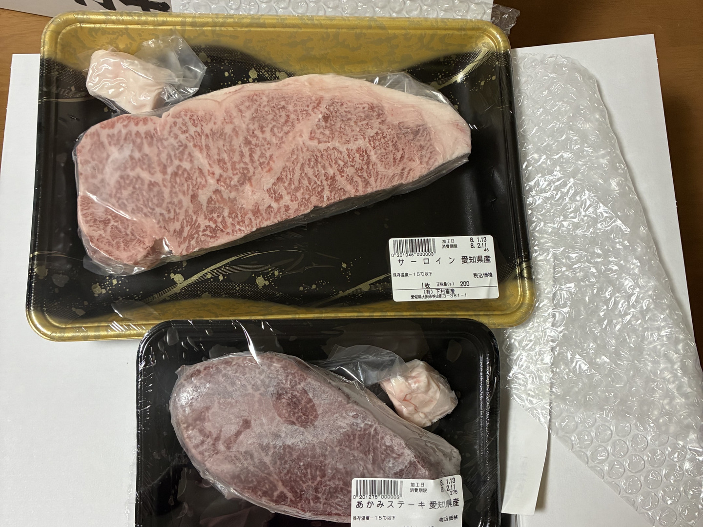 サーロインステーキ200g、あかみステーキ200g