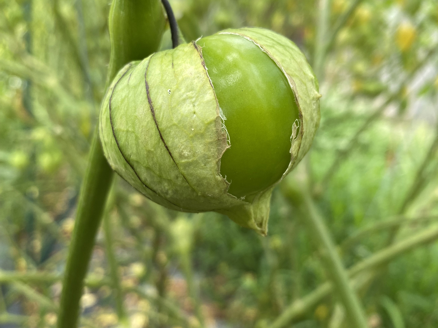トマティロはメキシコなどで主に食べられている食用ほうずきで、タコスなどに使うサルサデベルデ(緑のソース)を作るのに外せない野菜です。