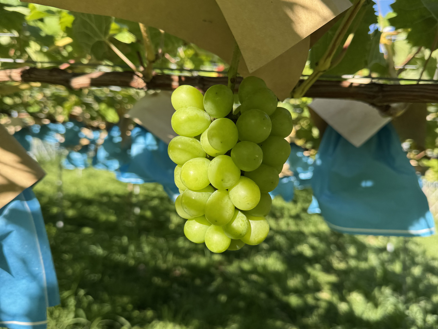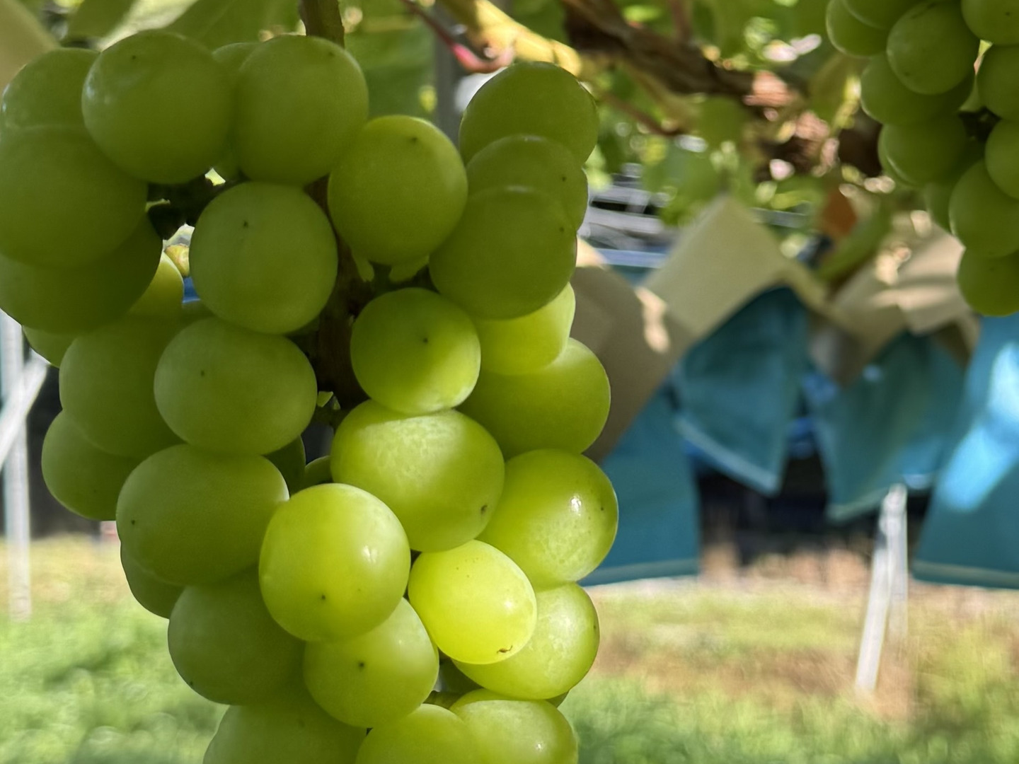 当農園のシャインマスカットを現在4年目の若木のため、栽培上、小房、小粒、房形が良くないものができてしまいます。