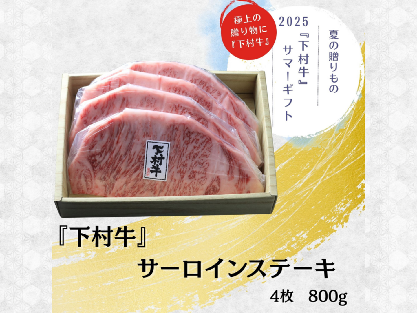 【期間・数量限定】黒毛和牛『下村牛』サーロインステーキ 4枚800g