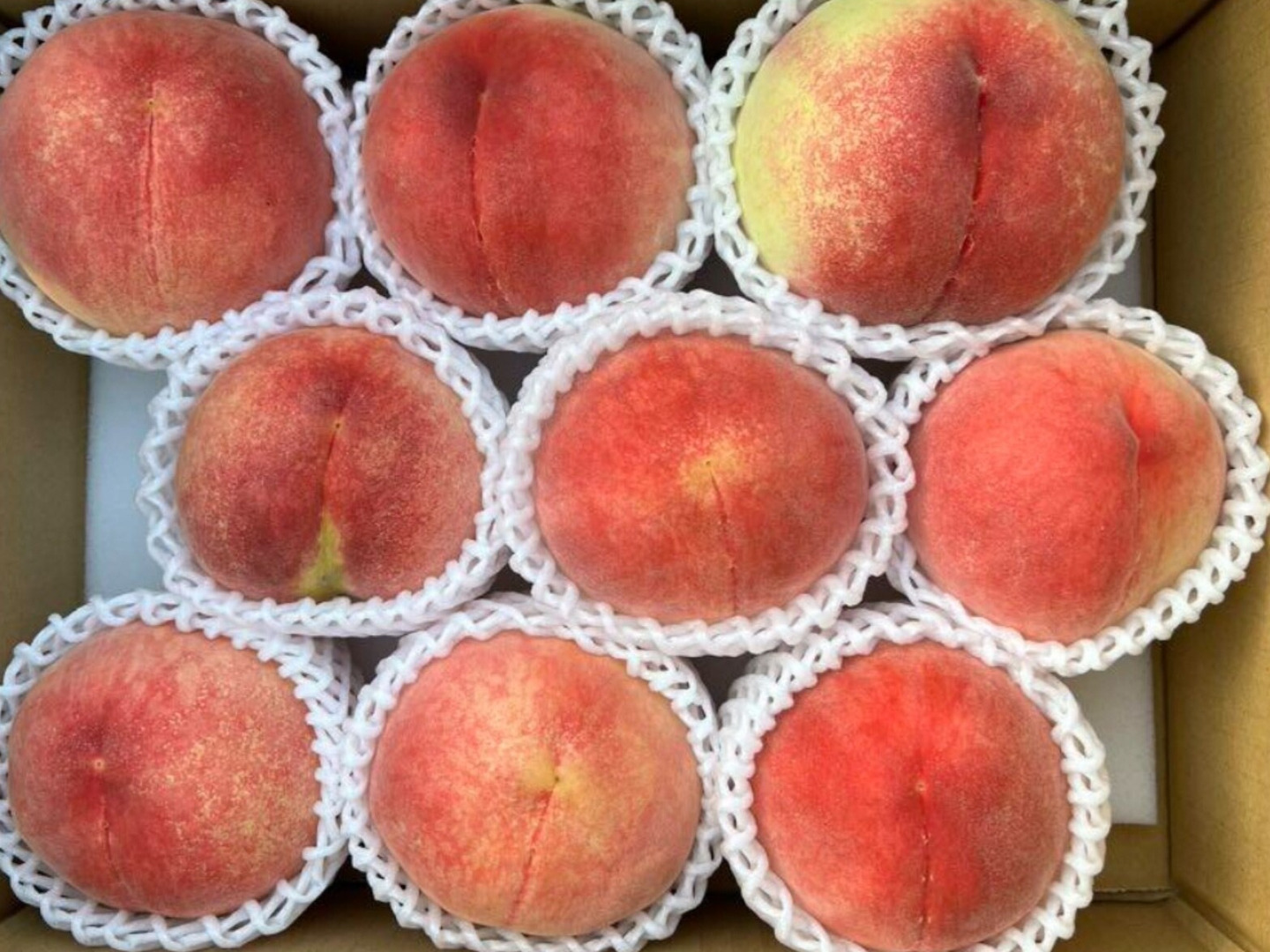 ・丁寧な箱詰めを行っていますが、配達中の揺れや気温上昇により桃の状態が変化する可能性があるためご了承下さい。