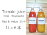 【数量限定品】無塩、無糖、保存料無添加 北海道産ミニトマトジュース1L×6本セット(赤色3本、黄色3本) 栽培期間中農薬・化学肥料不使用、除草剤不使用