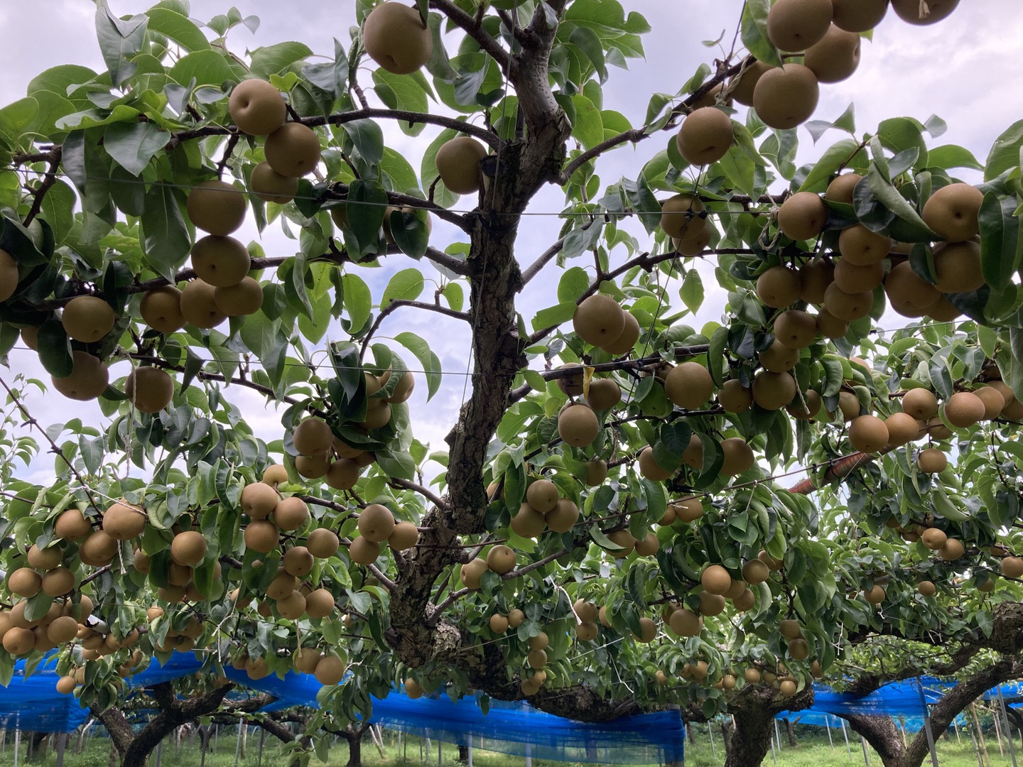 当園は『完熟状態での収穫』『有機肥料の施用』『農薬散布量節減(約50%減)』にこだわり、健全な樹木育成、甘くて美味しい梨づくりに努めてしております。