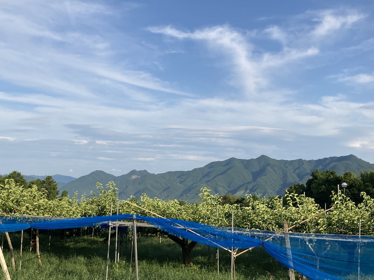 ここ大分県由布市庄内町にある長岡梨園は、標高400mの南側の傾斜面に位置しているため、十分な日照、夏季夜間の低気温、適度な降雨量といった、大きくて甘い梨ができる条件が揃った大変恵まれた自然環境にあります。
