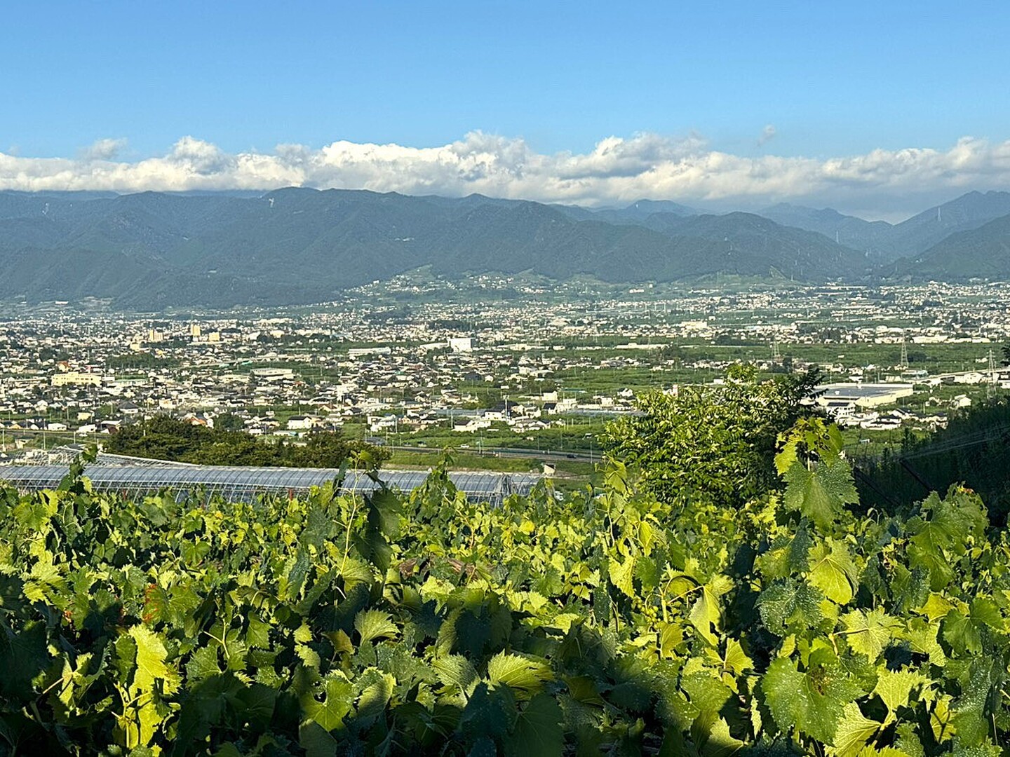 盆地の山梨は、昼夜の寒暖差が非常に大きく、日照時間も長いため、葡萄栽培に適した環境です。私の圃場は、南向きの傾斜面にあり、水はけも良く、健康な土壌のため、瑞々しい葡萄が育っています。