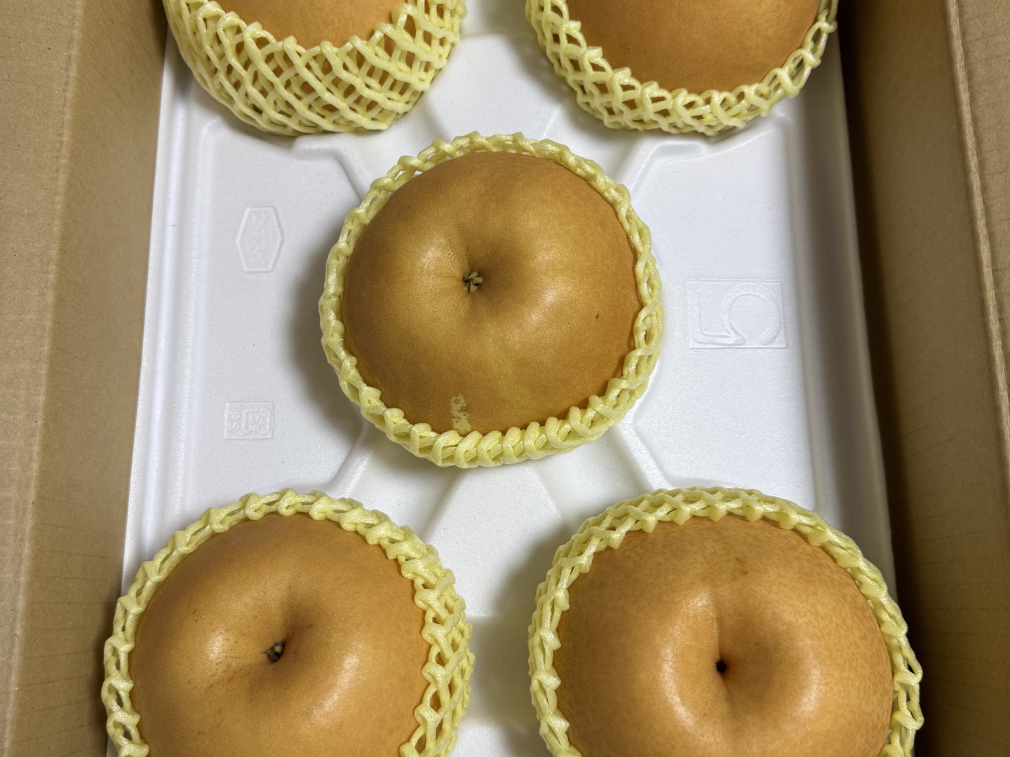 当園で栽培している梨でも、かおり(青梨)の次に大きな梨です。