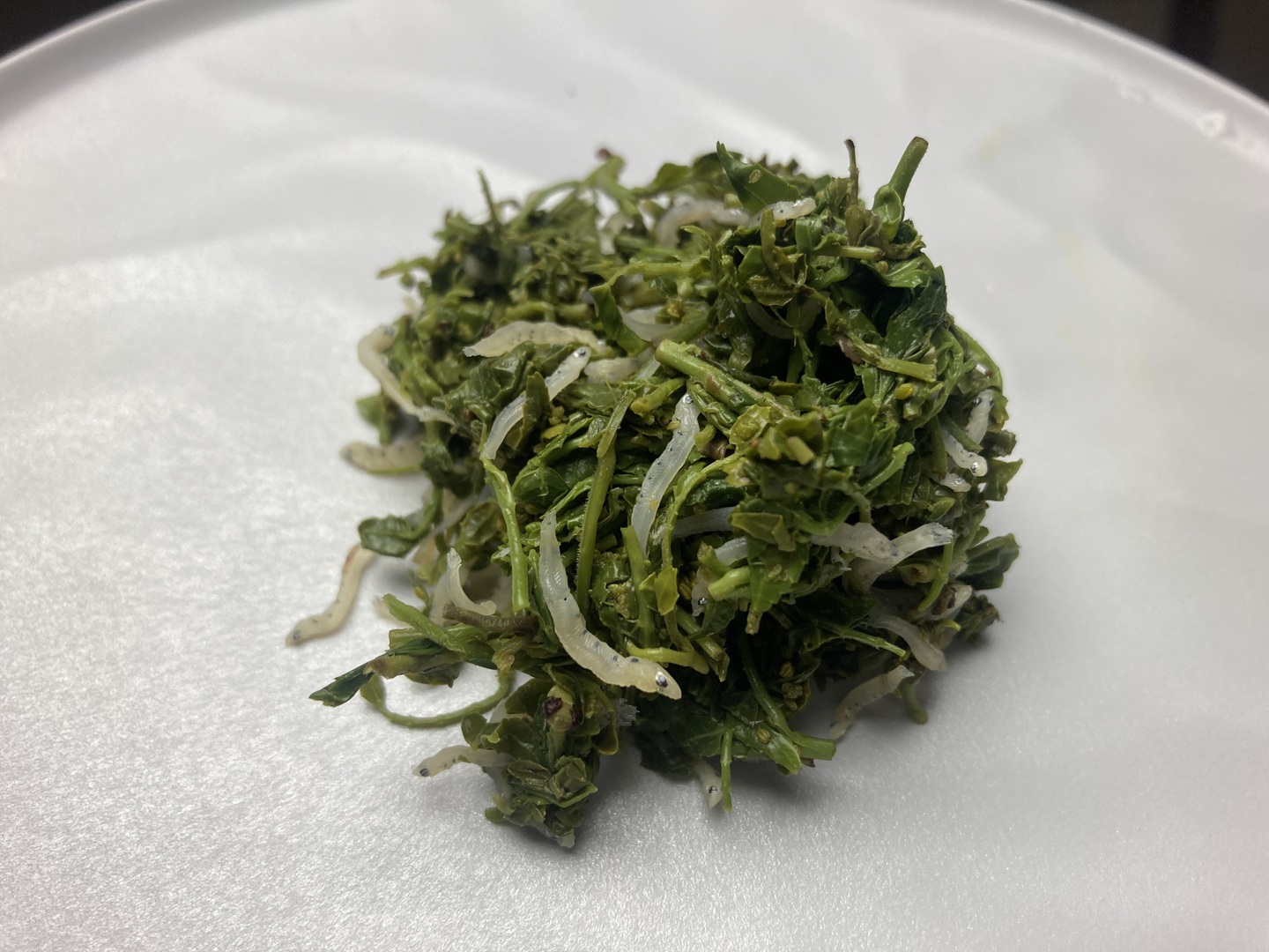 その新芽を湯通しして冷凍し、真空パックで閉じたものです。