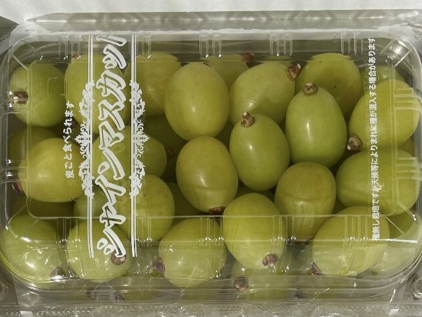 ・傷、かすり(成熟して糖度が高くなると出る茶色いシミ)がある粒が入りますが品質には全く問題ありません。