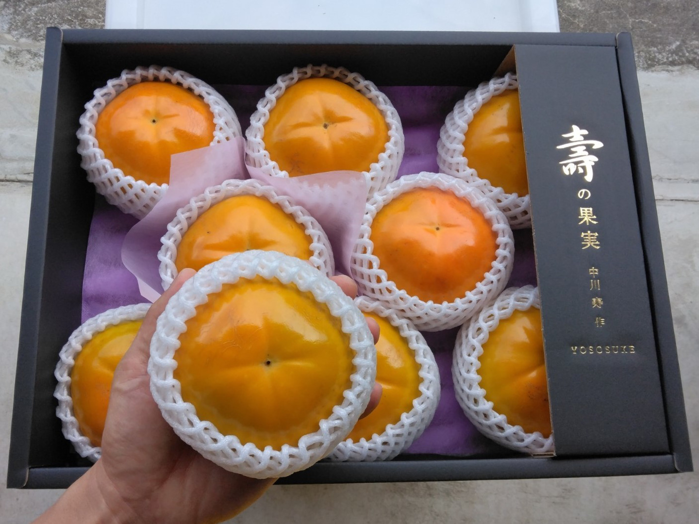できれば、2個目は5日~7日後頃にお召し上がってみてください。とっても甘くて美味しいですよ。「柿のマンゴーです。」