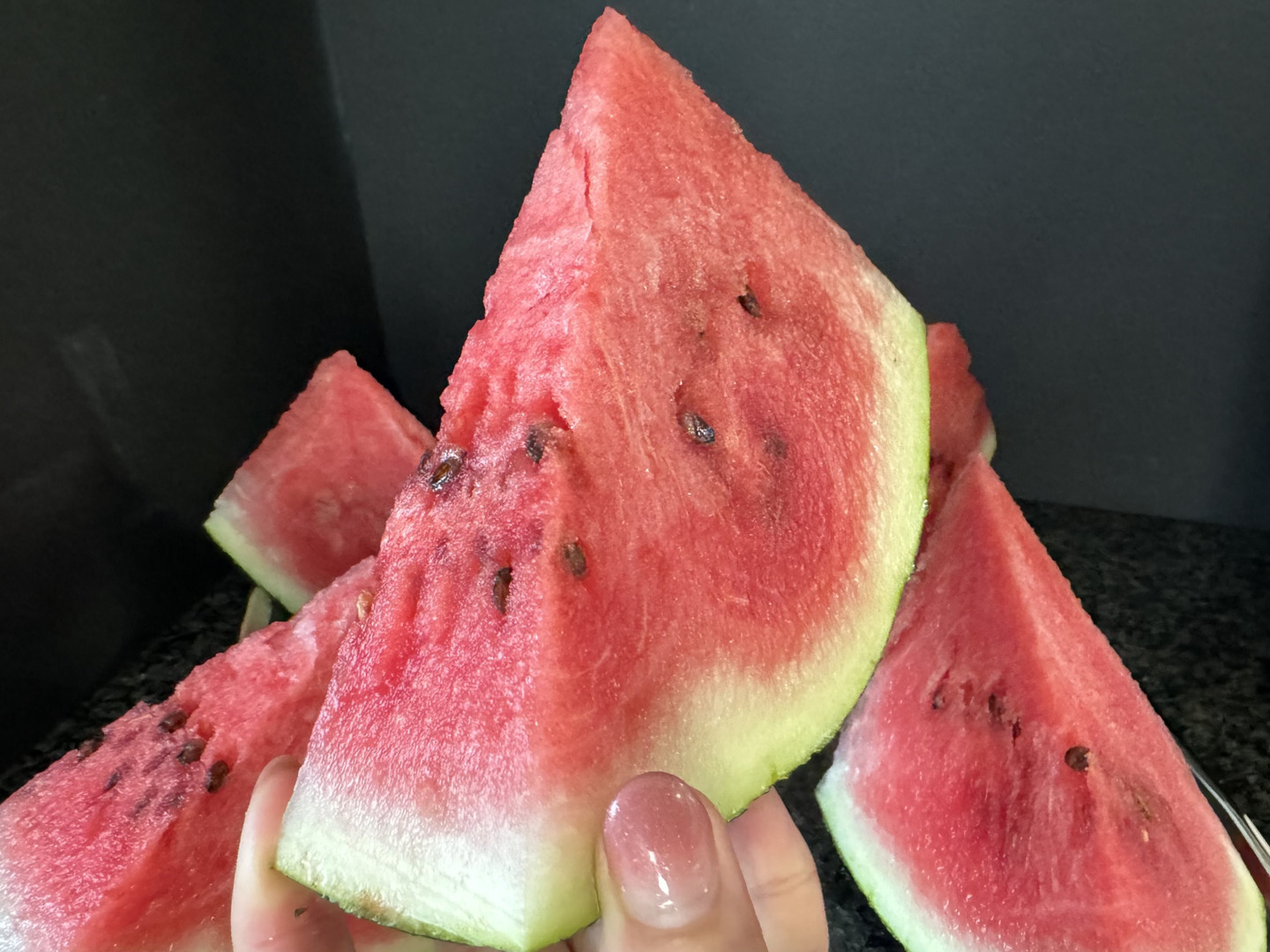 でも、自根栽培のため硬すぎない食感の果汁溢れるジューシーなスイカです。