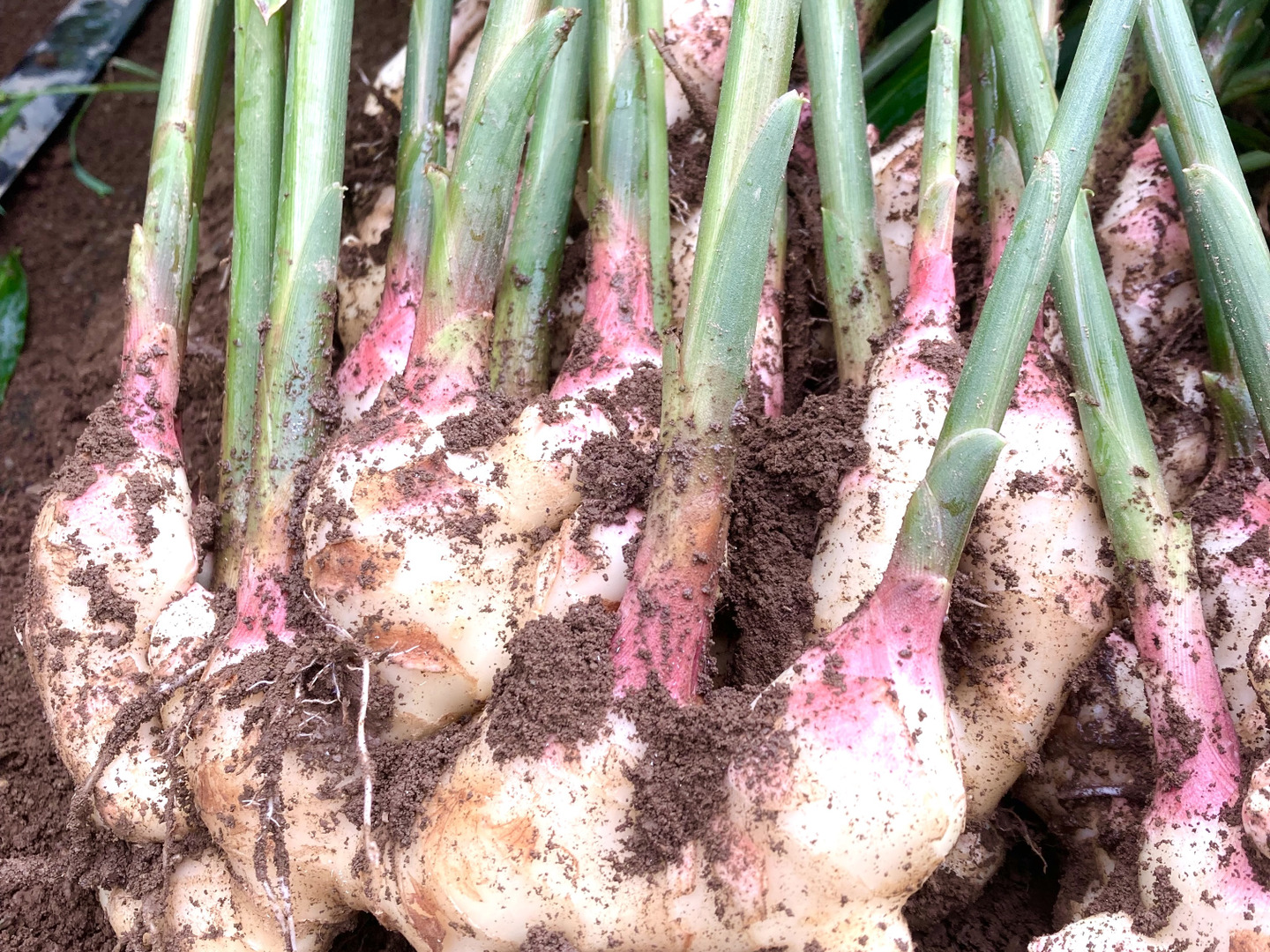 有機資材、乳酸菌等で大事に育てた新生姜ですが