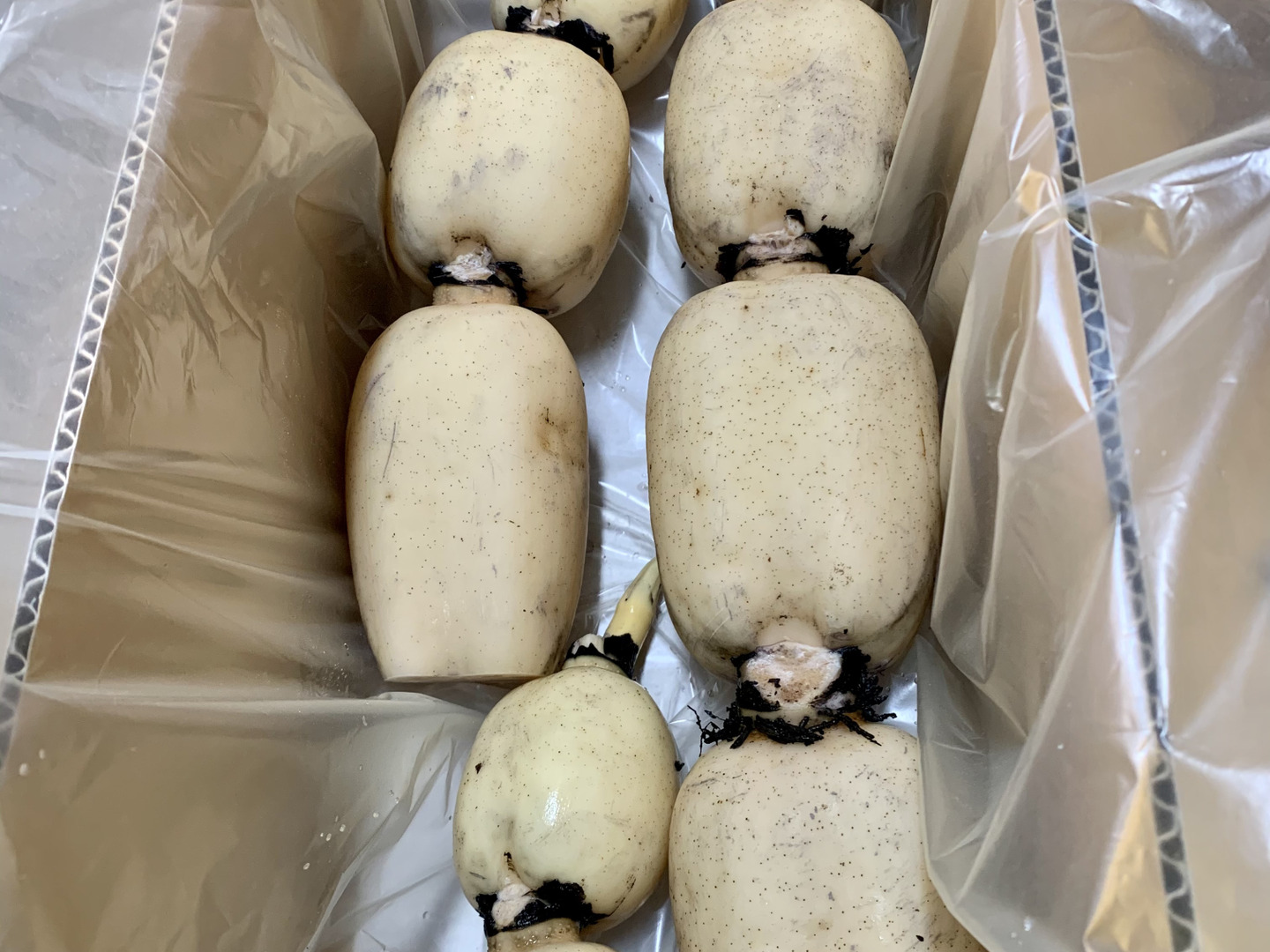 7月から11月・4月から5月は気温が高くクール便にて対応させていただきます。表皮の赤茶色の付着は土中に含まれている鉄分ですのでご安心ください。