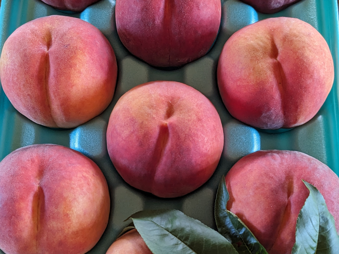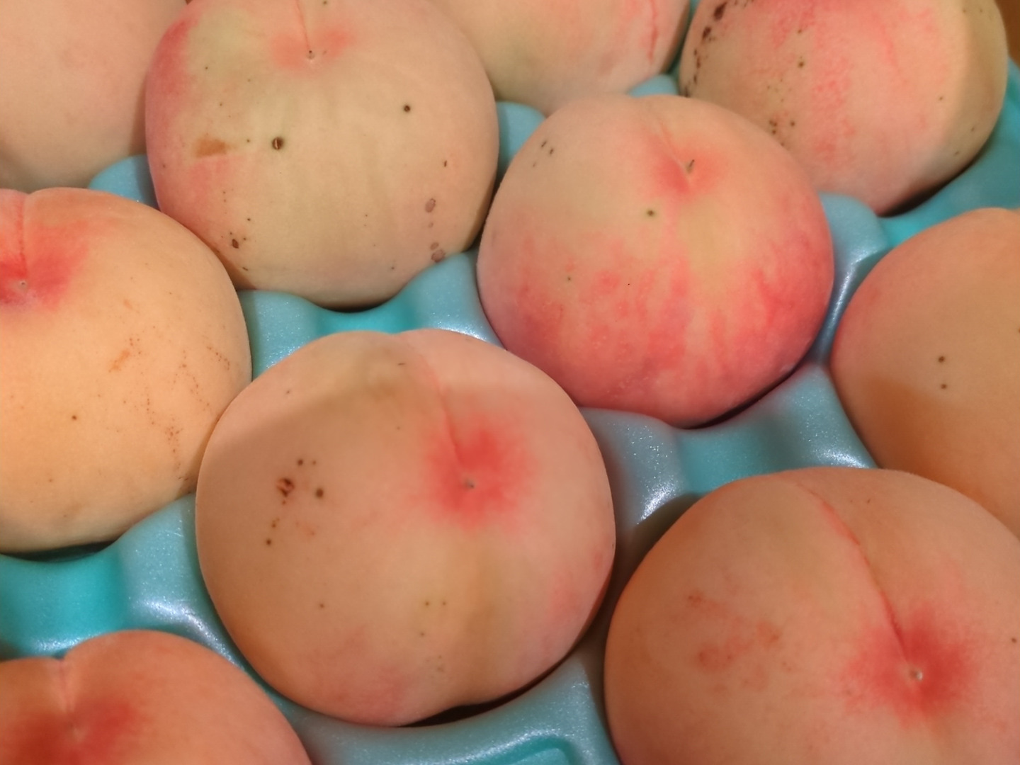 桃は手のひらで包み込むよう持っていただき、ヘタのあたりまで柔らかいと思われる桃を冷蔵庫で冷やしてお召し上がりください。