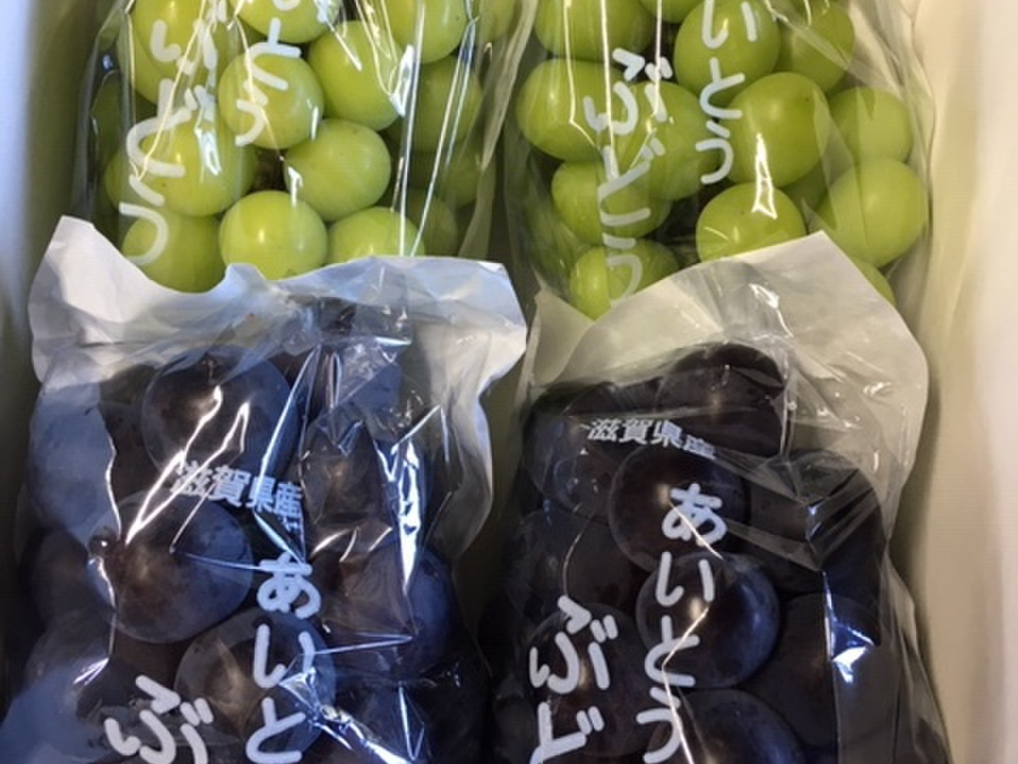 シャインマスカットとピオーネ4房(各2房)入り箱