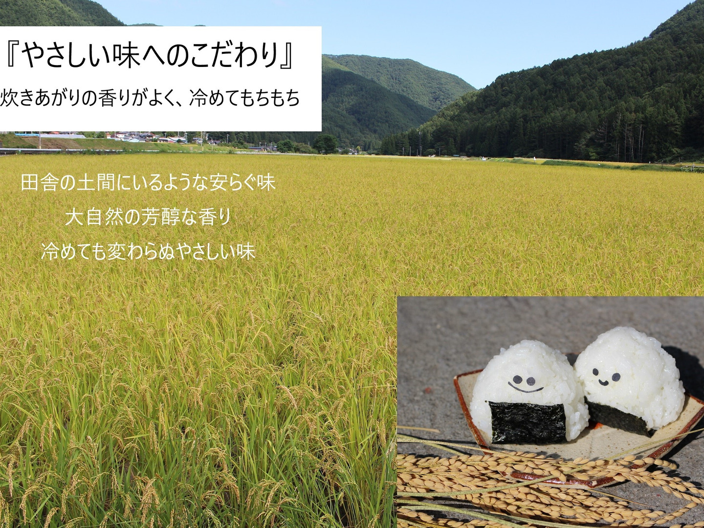 このお米は、農薬にも肥料にも頼らない自然豊かな大地が育てたので、炊きあがりの香り、冷めたときにも甘味があり、もちもち感が心地よいお米です。
