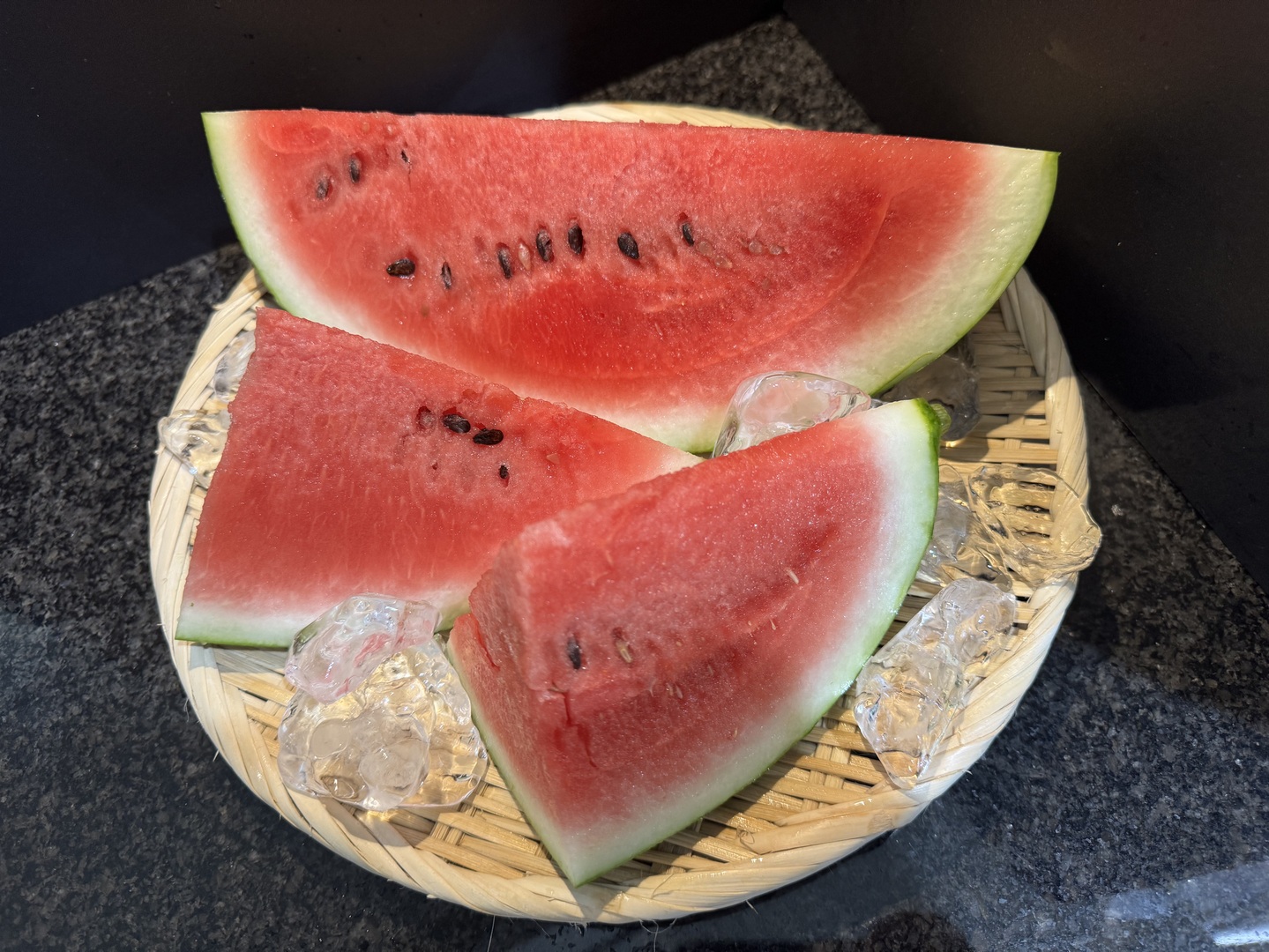 ▼【雅】が付かない当該商品は、管理上糖度のバラツキが出ているものになります。また、スイカのお尻部分や、側面の皮の表面が緑ではなく、黄色(日に当たらず緑化しなかったもの)のままになっているものがあります。