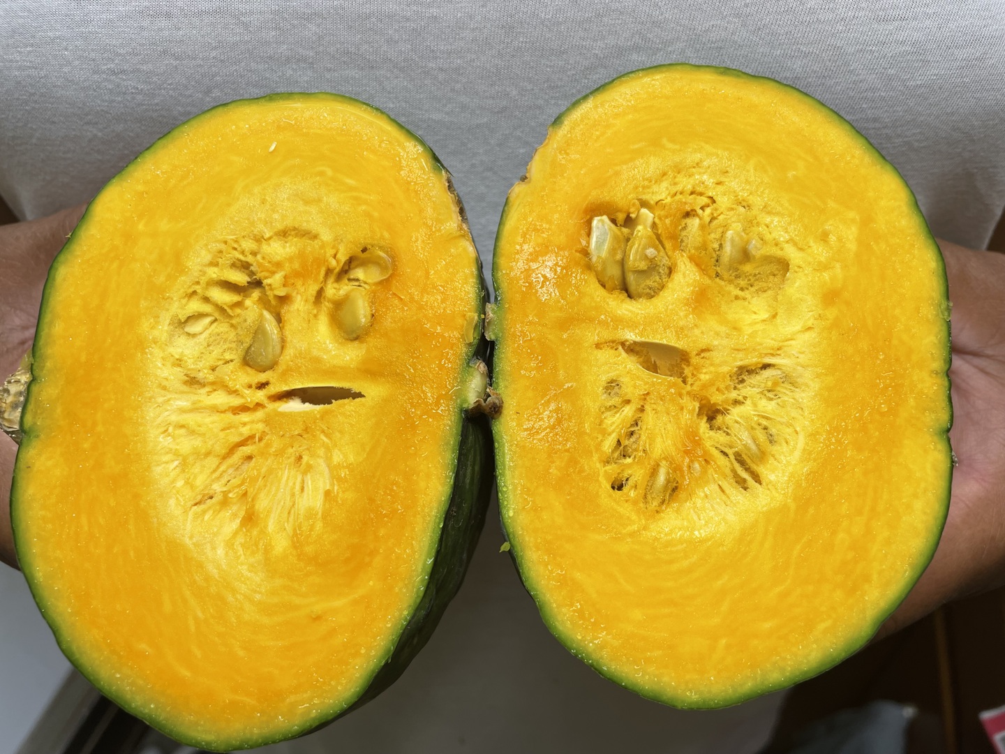 今回お届けするお野菜は、太陽のエネルギーをいっぱい蓄えた、ホクホクとやさしい甘さ ほっこり姫『ミニかぼちゃ』です。夏かぼちゃ特有の瑞々しさもあり、あっさりと食べられます! ※ 8月23日現在、追熟も進みさらに美味しくなっています♪