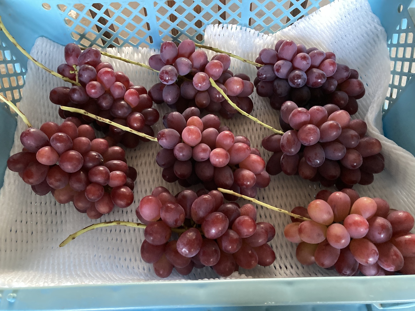 ユニコーンとシャインの掛け合わせで赤系のぶどうです。