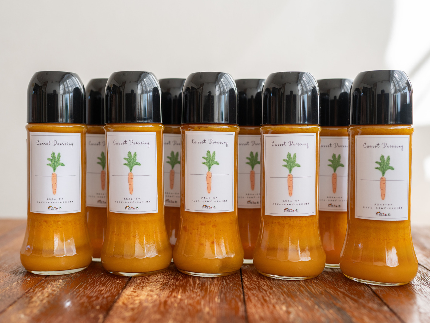 瓜生ふぁーむの人参、玉ねぎ、にんにくを使用した人参ドレッシング