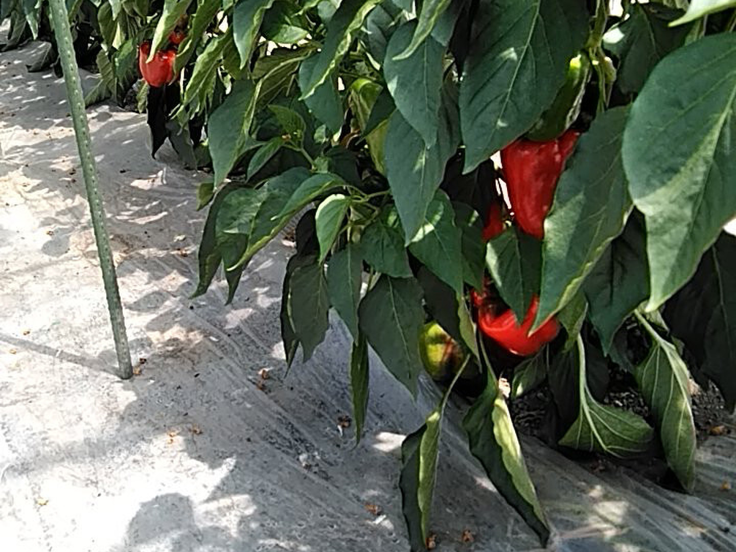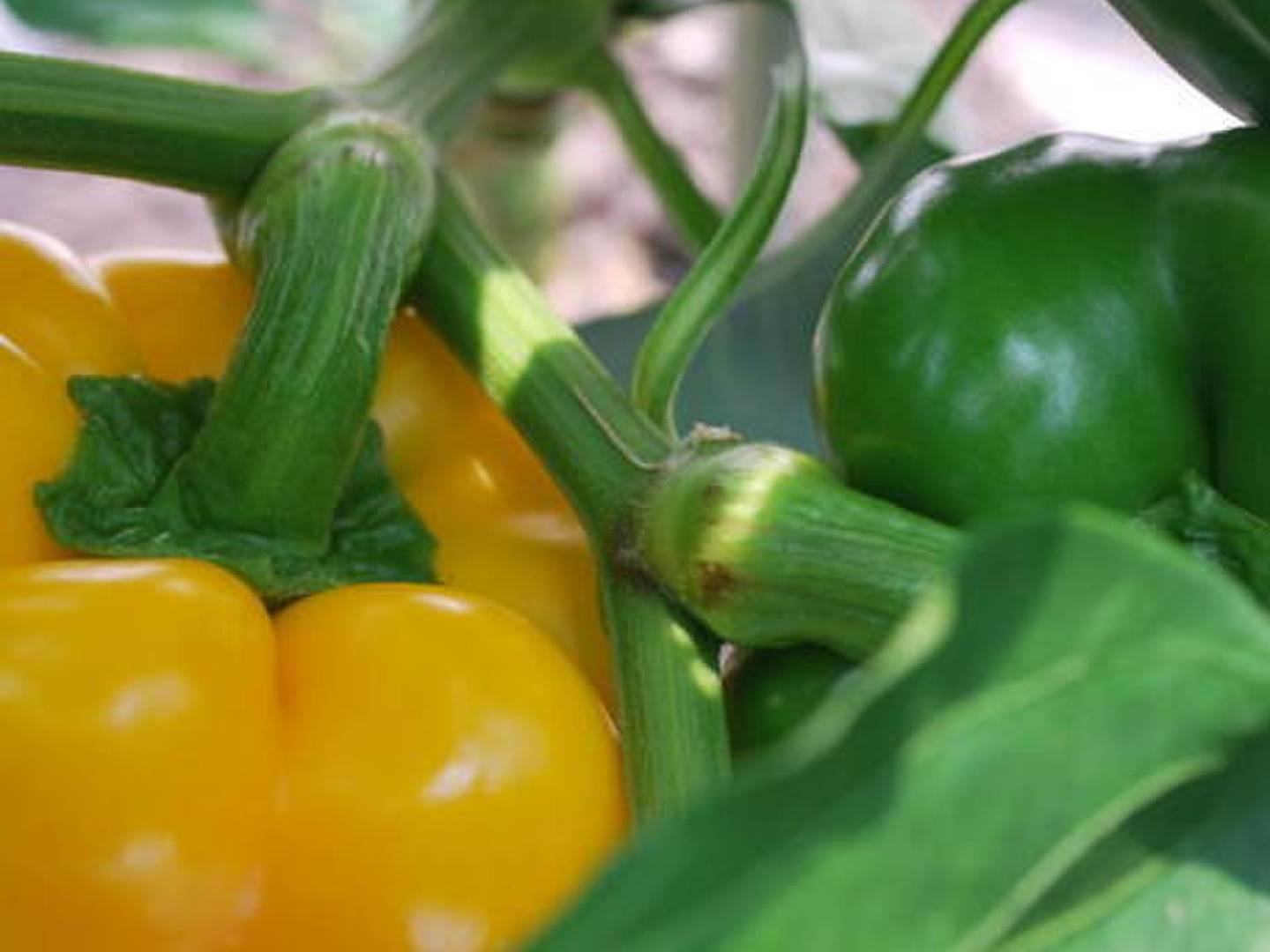 北海道栗山町のハウスで土に植えて育てた赤と黄の鮮やかなパプリカです。