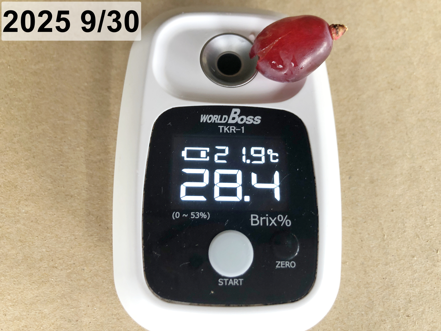 商品について あわせ買い対象 同生産者の別の「あわせ買い対象」商品と一緒にご注文いただくと、送料をまとめてお届けできる場合があります。 生産者からのお知らせ 年末の年始の料理に使用されるお客様へ備考欄にお届け希望の日時をご記載下さい。100%のお約束は出来かねますが、出来るだけご希望に合わせて発送致します。 もっと見る 内容 バイオレットキング クイーンマスカット 重量・容量 約800g 発送 ヤマト運輸(食べチョク特別送料) 送料 ¥ クール便(冷蔵) + ¥ 275 数量1点ごとに送料が発生します。 種別 果物 ぶどう バイオレットキング 産地 福島県 農薬節約栽培 果物 家庭用 バイオレットキング 福島県x果物 福島県xぶどう 福島県xバイオレットキング 商品説明 今シーズンラスト1点になると思います。内容量についてバイオレットキング 約800g 粒パック400g x 2 + (粒)クイーンマスカットおまけ(100g未満)合計 約900g商品概要🍇バイオレットキング(山梨県 志村葡萄研究所オリジナル品種)甘み :★★★★★酸味 :★★☆☆☆香り強さ :★★★☆☆強い甘みに芳醇なコク、ほどよい酸味、大粒かつ果汁たっぷりでとても食べ応えがあるぶどうです。香りや風味、酸味の系統はさくらんぼやりんごと表現される事が多く、とても爽やかな食味でついつい手が伸びてしまうそんなぶどうです。皮ごと召し上がれます。糖度もシャインマスカット同等か超える場合もあります。今シーズンの糖度は19~23度前後になっていますので極甘です。その他の特徴として、きれいな紅色に仕上げつつ一粒も割れずに作るのは極めて困難な為、生産者がとても少なく希少品種と言えます。🍇クイーンマスカット(粒おまけ) 別出品分あります甘み :★★★★★酸味 :★☆☆☆☆香り強さ :★★☆☆☆甲斐乙女xシャインマスカットを掛け合わせたとても綺麗な赤系品種です。小粒の品種ですがとても強い甘みで酸味がほとんどなく、ぶどうをギュッ!と凝縮したような濃い味わいが特徴的です。栽培性が悪く「幻のぶどう」と呼ばれるくらい滅多に市場に出回らない超希少品種です。マスカットの香りを持ち皮ごと召し上がれます。こちらも現在糖度19~23度前後ですが酸味が少ない為、数字以上に甘く感じる粒もあります。甘いぶどうを好まれる方におすすめ致します。栽培のこだわりきくちぶどう園では糖度、香り、コク、酸味などの「食味」を一番に考え『もう一度食べたくなるぶどう』を目指して様々な工夫をしています(是非生産者こだわり項目をご確認下さい)美味しさにこだわったぶどうを、是非みなさまに食べていただきたいです。梱包について 丁寧に梱包して発送致しますが、輸送中に房から粒が落ちたり、割れてしまう場合がございます。到着時あまりにも状態がひどい場合は、まずはご連絡頂けますと幸いです。速やかに対応させていただきます。発送時期について9月4日~順次発送の予定です。※天候によっては遅れる場合がございます。ぶどうは収穫後に追熟がすることがないので、収穫するタイミングとても重要です。出来る限りおいしいぶどうをお送りしたいという思いがありますので、ご理解の程よろしくお願いいたします。ご留意いただきたい点🔹 農産物の特性上、粒の大きさや色づきは全て同じものをお届けすることはできません。よごれ、裂果などの粒を取り除く場合があり、隙間があいた房が含まれる場合があります。特にこのバイオレットキングは、完全な房でお出しするのが極めて難しいので、ご理解頂ける方のみご注文お願い致します。🔹種なし処理をしっかりと行っていますが、まれに種が入る場合がございます。🔹とても小さな農園なので、数には限りがあります(品種によっては100房未満)何卒ご容赦頂きますようにお願い申し上げます。 もっと見る この商品のことをお友達にもシェアしませんか ポスト シェア