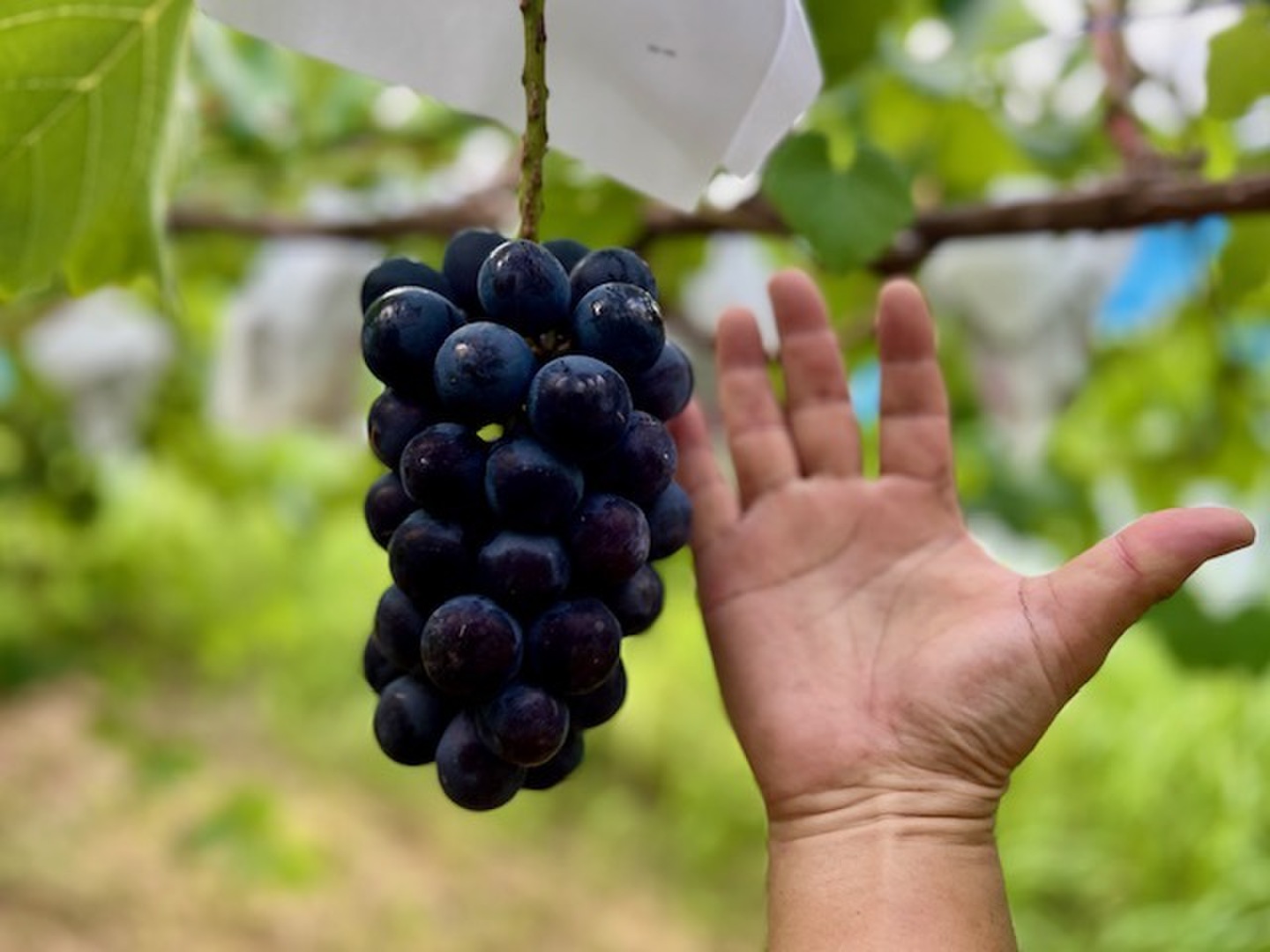 果汁が多く、濃厚な甘みと赤ワインのようなフォクシー香を併せ持つ食味良好な品種で、手を汚さずスマートに楽しめるのも嬉しいポイント。
