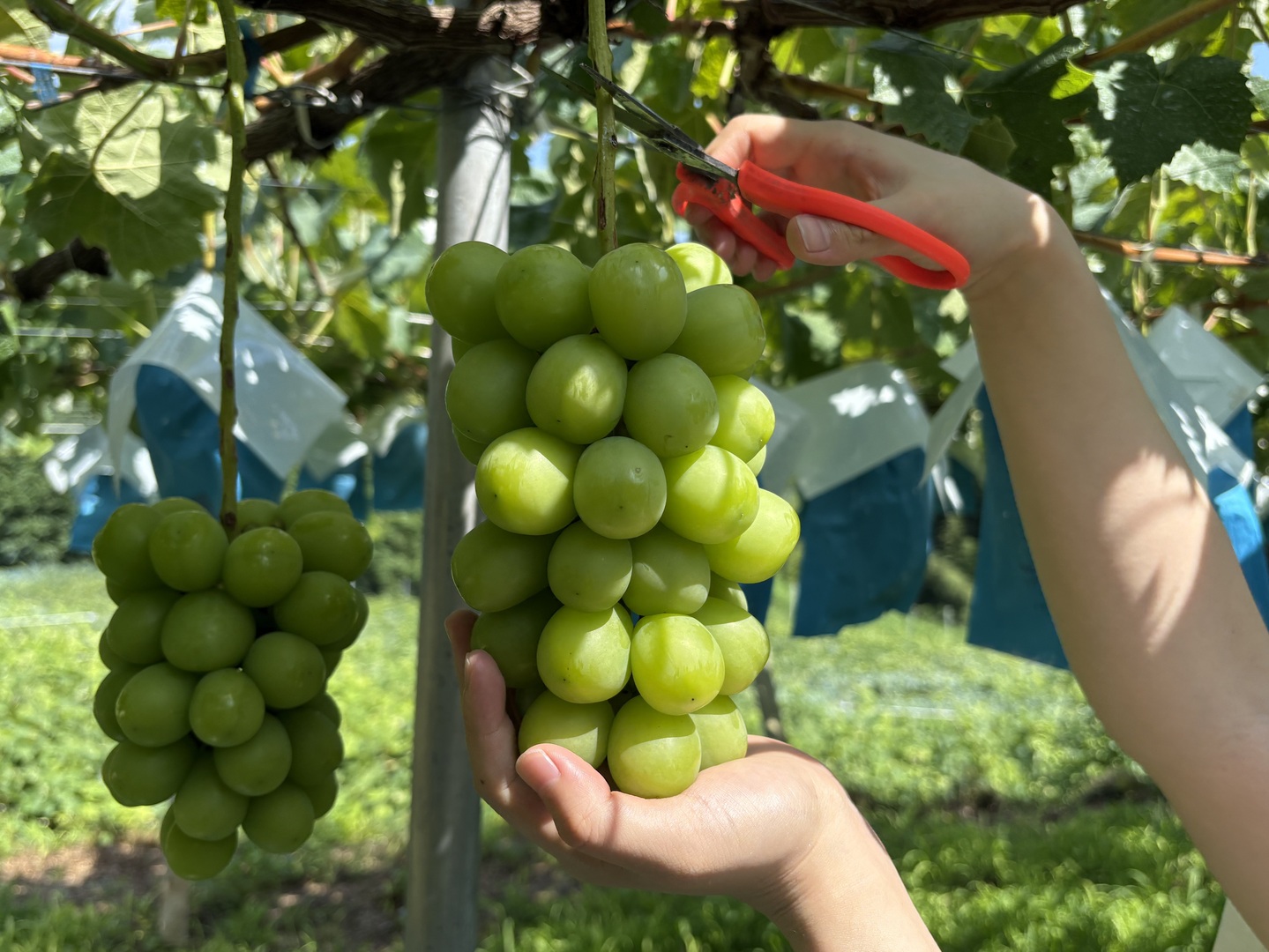 当農園がある牧丘町は別名「巨峰の丘」と呼ばれるほどぶどうの生産には古くからの歴史があり、日本でも有数の適地で生産されています。牧丘産のシャインマスカットは口に含んだ時のマスカットらしい香りや甘さが強いことで高い評価を受けています。