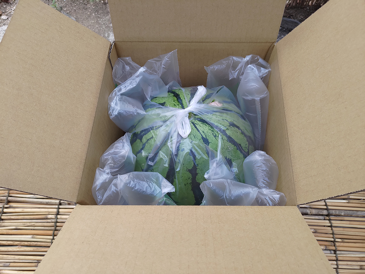 ▼今期終売【晴れの国・岡山県産】シャリ感たっぷり!皮手前まで美味しい大玉すいか『縞王』6Kg級-1玉/ニホンミツバチ交配/露地栽培/化成肥料・化学農薬・着果剤不使用【※保冷便指定】