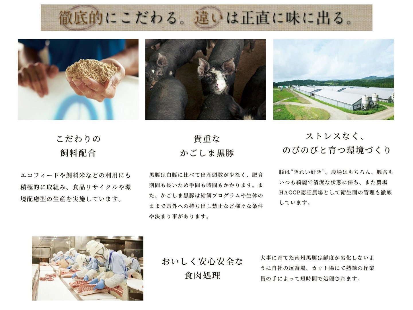 鹿児島県大隅半島にある自然豊かな自社農場で大切に育てられた「かごしま黒豚」が原料。